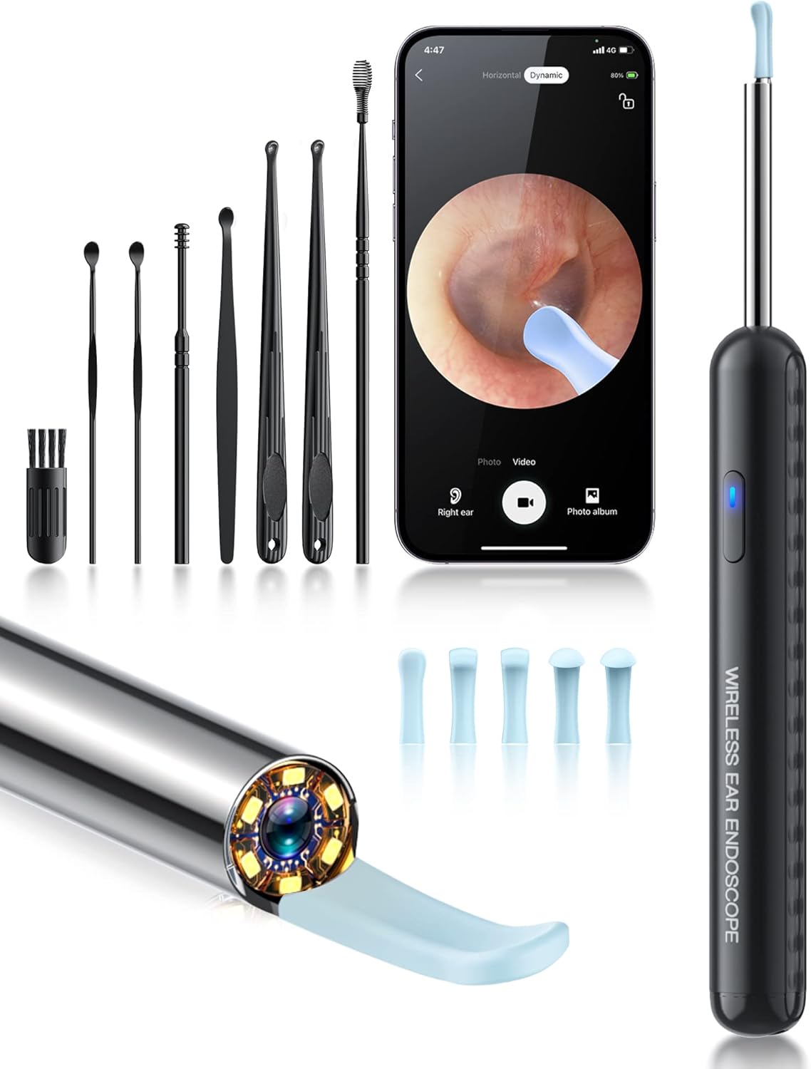 1080P HD 360° Free View: 360° wide-angle lens with 6 thermostatic LED systems to help you illuminate your ear canal and capture high-definition pictures and videos in real-time with a large field of view and no dead space.