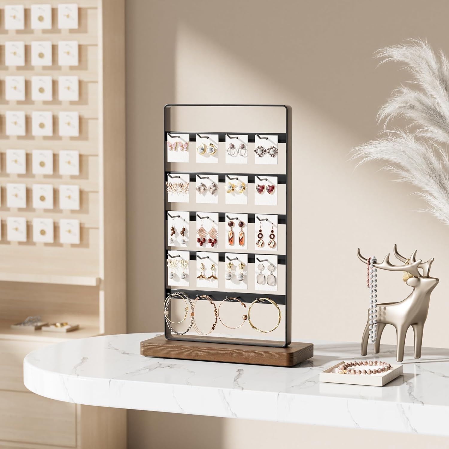 【Display with 20 Hooks】: This display stand has a total of 5 tiers and 20 hooks for earring, earring cards, bracelets, necklaces, rings, hair claws, hair accessories or keychains.
