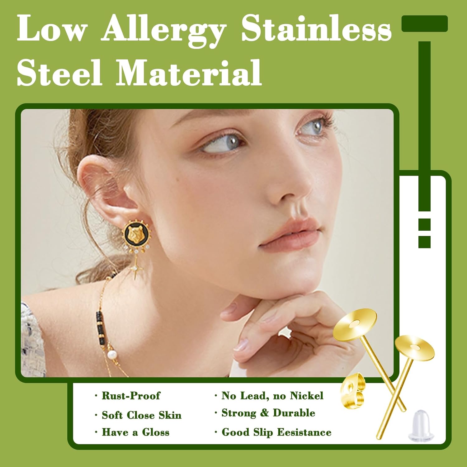 Be the first to review “Earring Posts Stainless Steel, 420Pcs Flat Pad Earring Studs (4mm, 6mm), Hypoallergenic Blanks Earring Posts with Butterfly and Clear Rubber Earring Backs for Jewelry Making Supplies (Gold)”