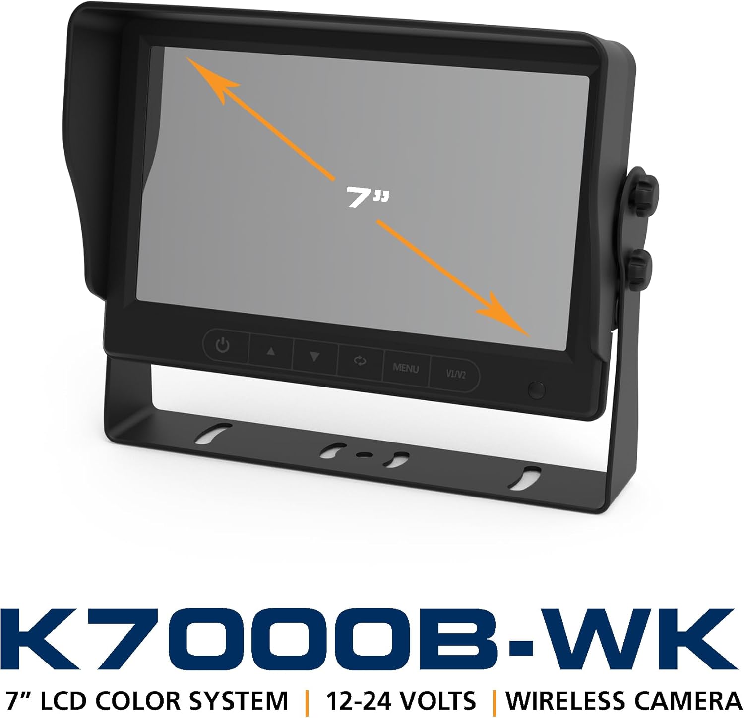 Comprising a feature packed 7.0” LCD high resolution color monitor and a basic color infrared wireless camera, the K7000B-WK delivers excellent picture quality even in low-light conditions. The compact monitor includes a sun screen and allows for unobtrusive installation without compromising viewable screen area. Kit is expandable up to 4 cameras (C2013B-WC only).