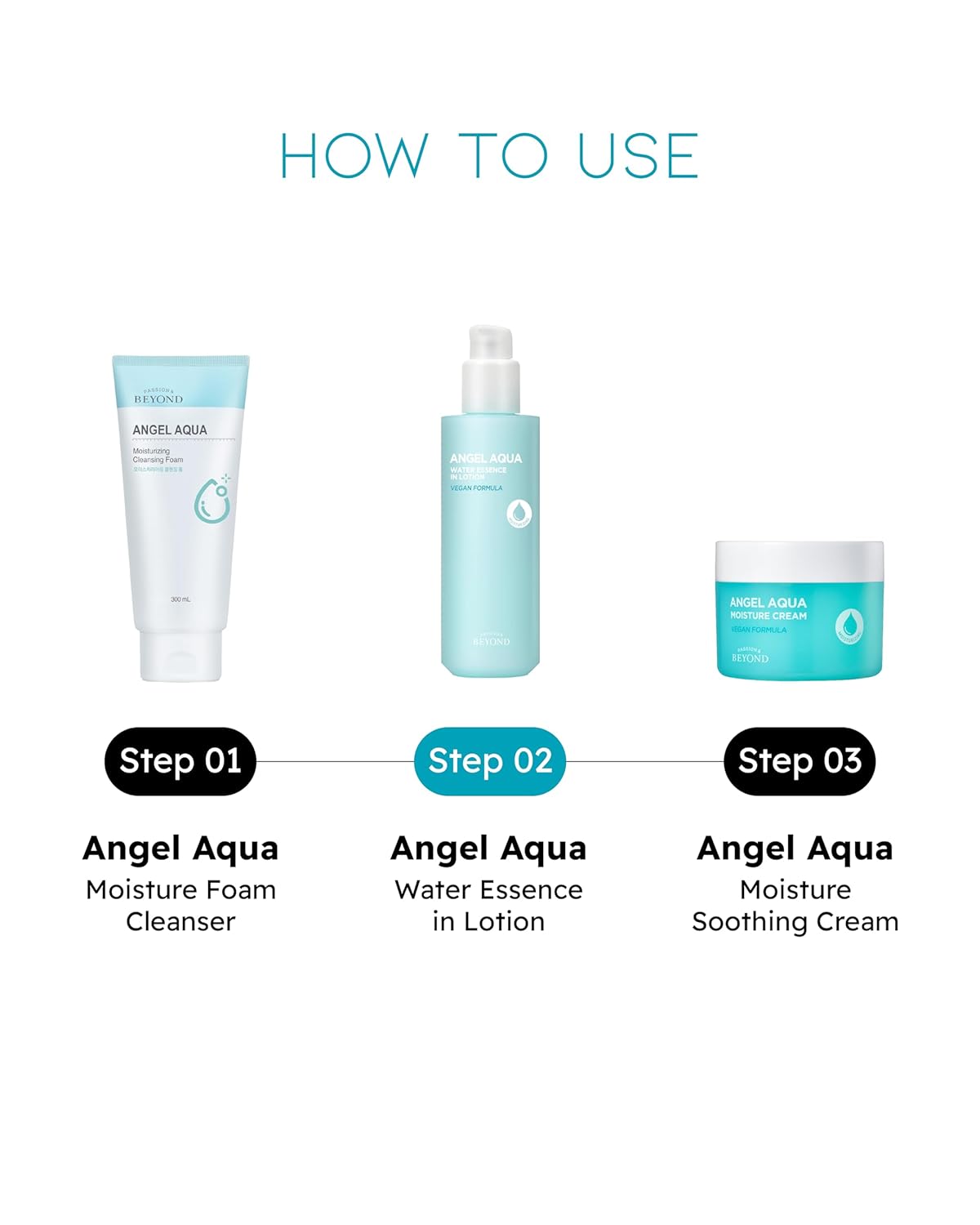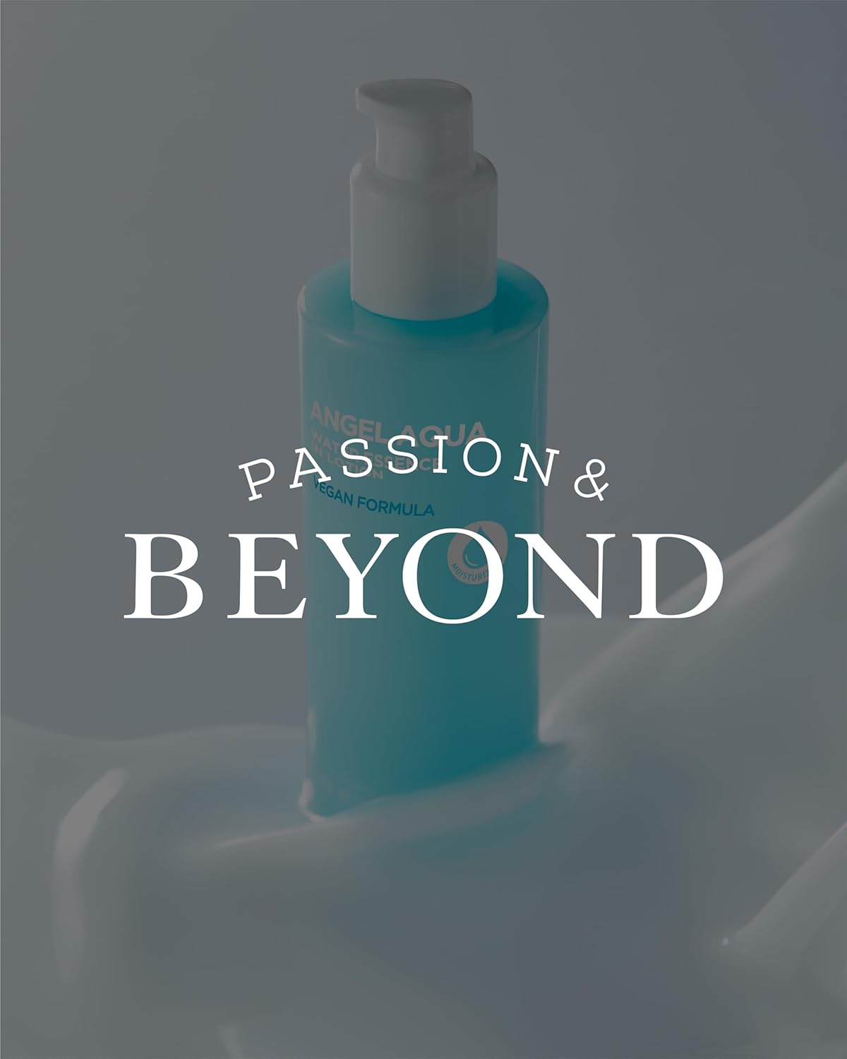 ECO BEYOND ANGEL AQUA WATER ESSENCE IN LOTION (200ml/6.8fl oz) – A multi-functional lotion combining toner, essence, and moisturizer in one, providing deep and fast moisture replenishment for all skin types. Its silky smooth texture absorbs quickly without feeling heavy or sticky.