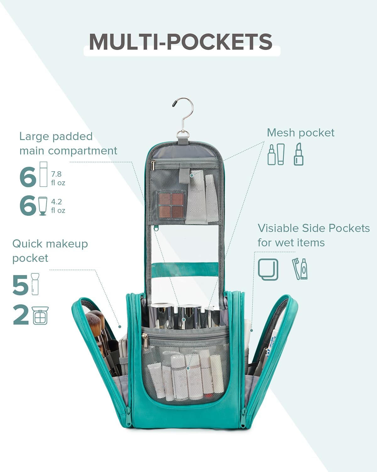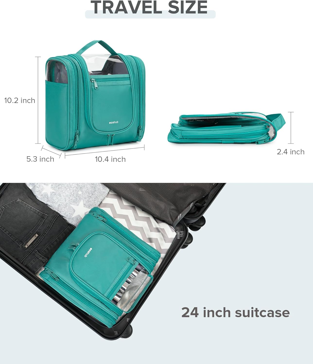 ECOHUB Travel Toiletry Bag, Hanging Toiletry Bag for Women, Full-size Container, Water-resistant Travel Makeup Organizer, Toiletries, Teal(PATENT PENDING)