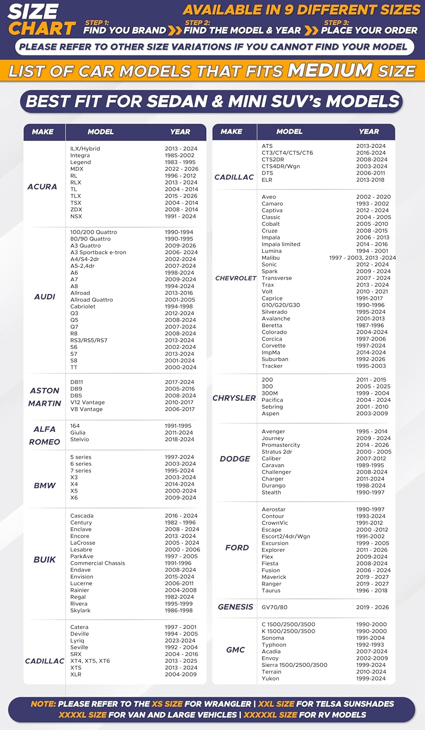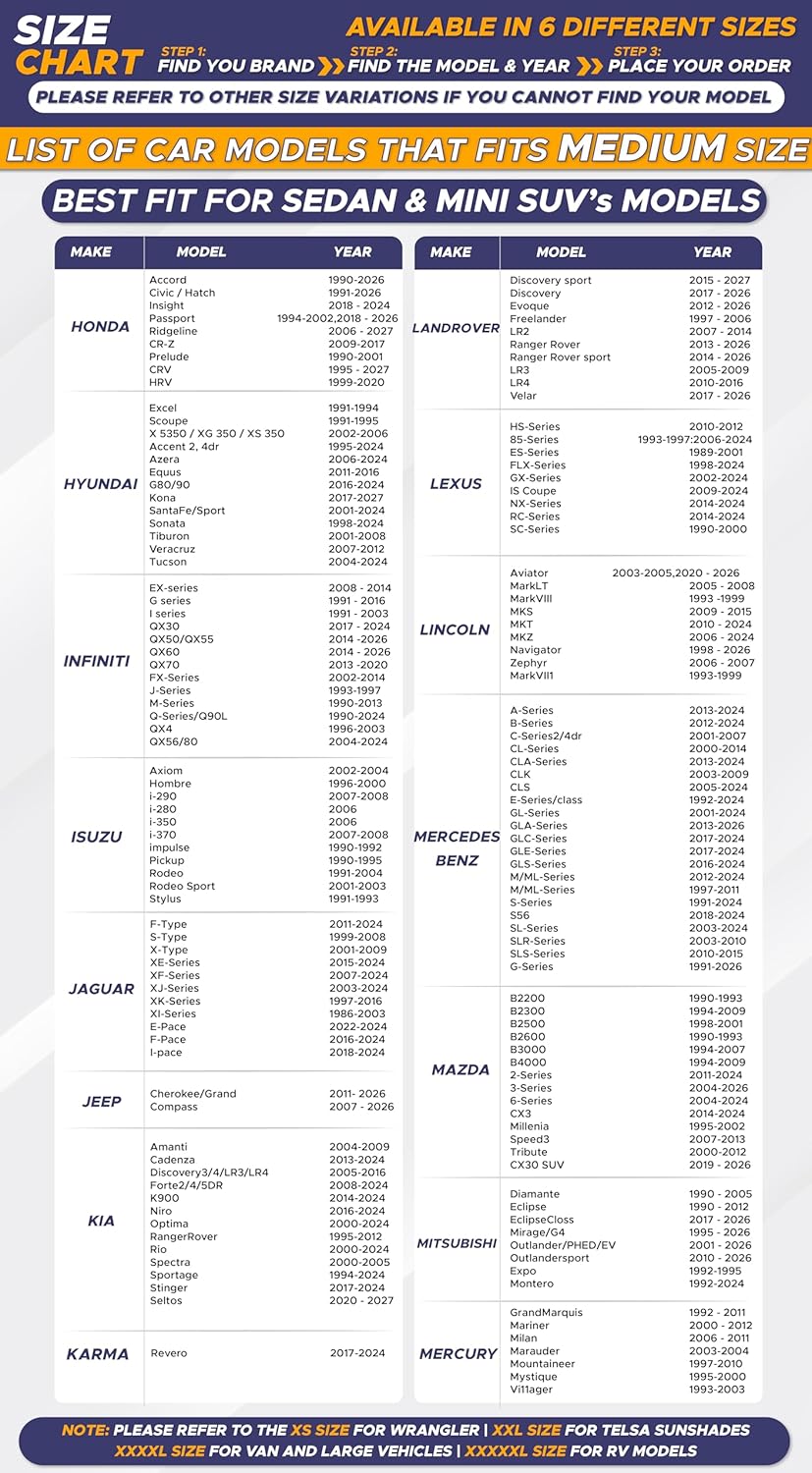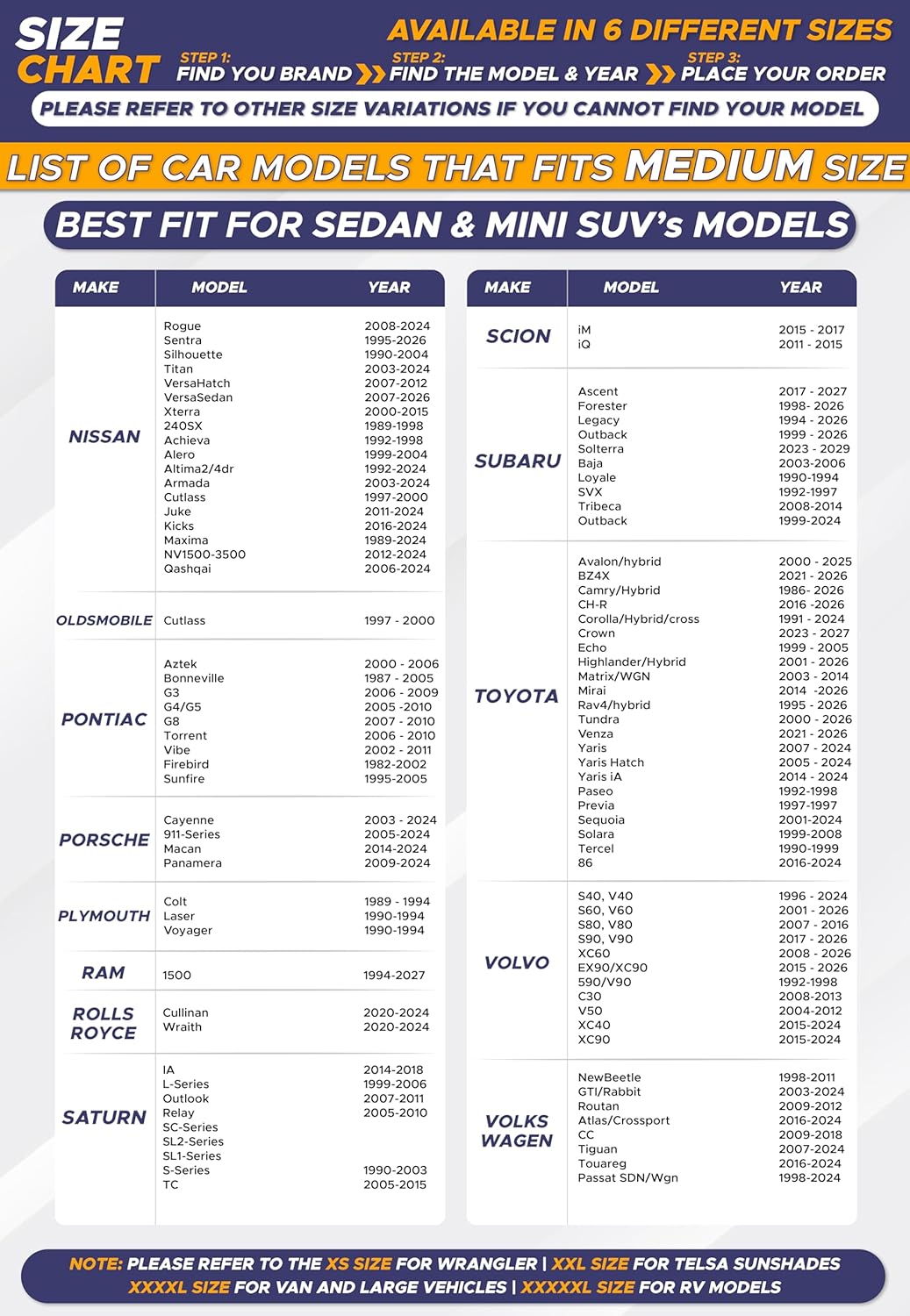 Wide Range of Sizes: Worried about which sunshade size to choose? EcoNour Car Sunshade auto accessories comes in seven different size variants that would fit right into most family sized four-wheelers. Please refer to the size chart for the best fit.