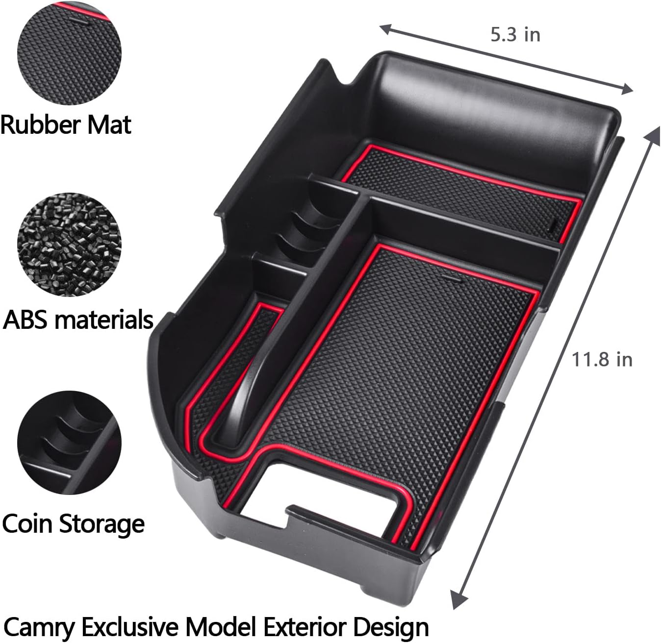 [More Space]: Armrest box of Camry XLE XSE is too deep and items in it are usually placed in disorder. This organizer tray can expand the capacity of armrest box and make your items more orderly. Organize the items at the bottom of the center console, and easily remove and put back. Is a very needed accessory for Camry LE SE XLE XSE