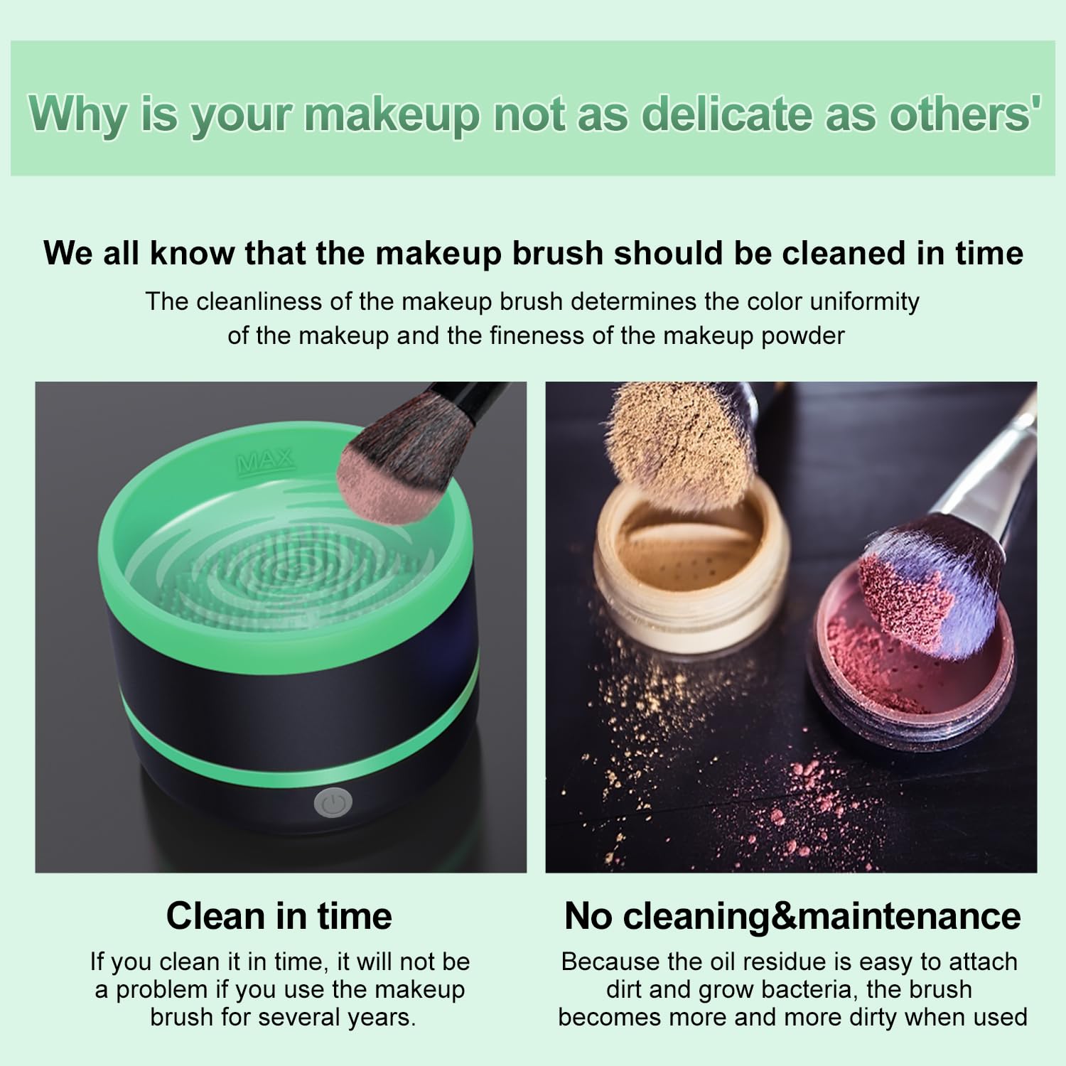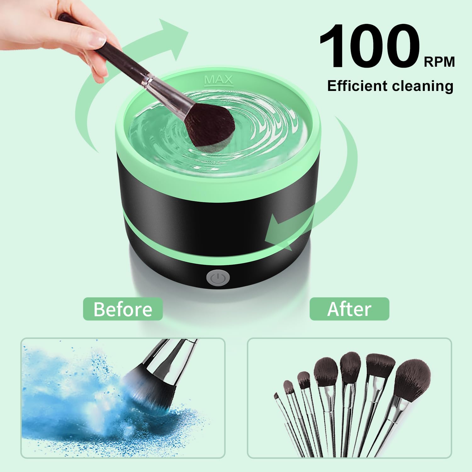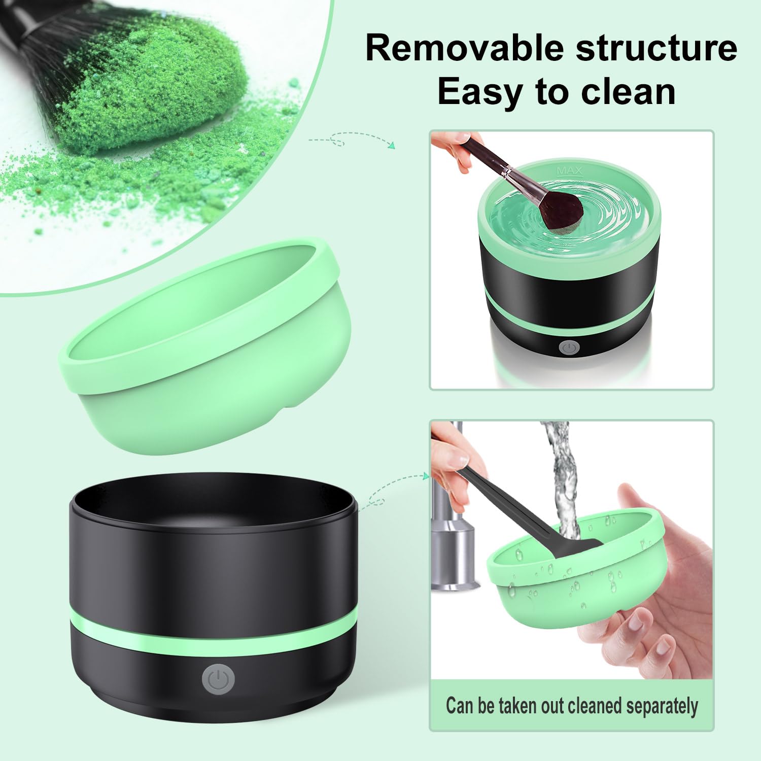 Efficient and Fast Electric Makeup Brush Cleaner, One-Button Operation, Deep Cleaning, Skin Protection, Suitable for All Makeup Brushes, Type-C power on powered brush washer (green)