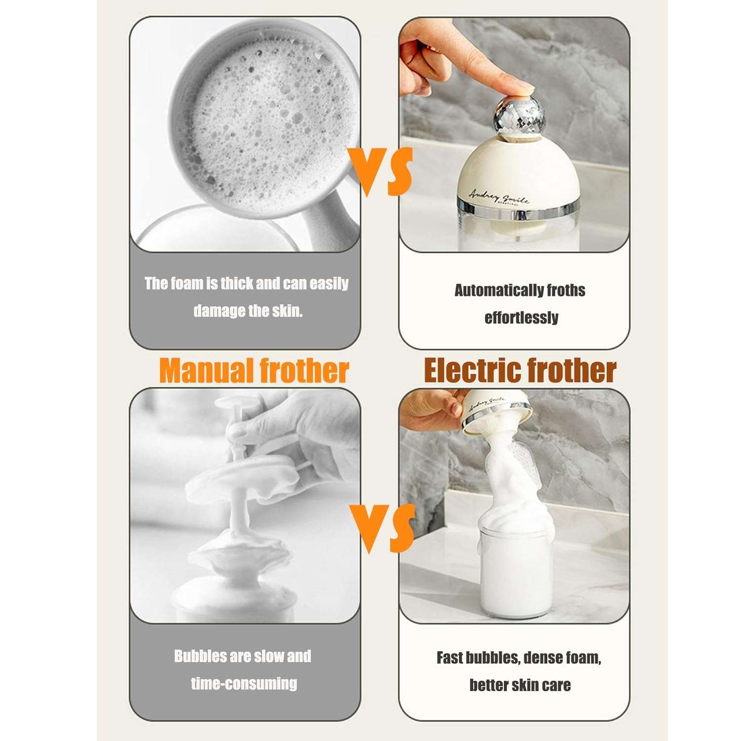 【Electric Facial Cleansing Foam Machine】Our electric foam maker for face wash is made of ABS and silicone, foams quickly and easily, is comfortable to use, foams evenly, and says goodbye to sore hands. Ensure it continues to be effective in your skin care routine and save on facial cleanser