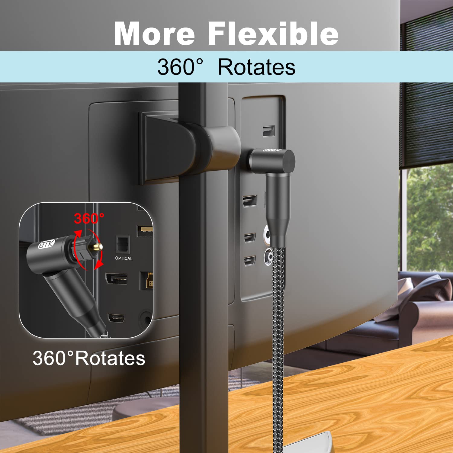 EMK 90 Degree Optical Audio Cable 360 Degree Free-Rotating Digital Fiber Optic Cable for Home Theater, Sound Bar, TV, PS4, Xbox