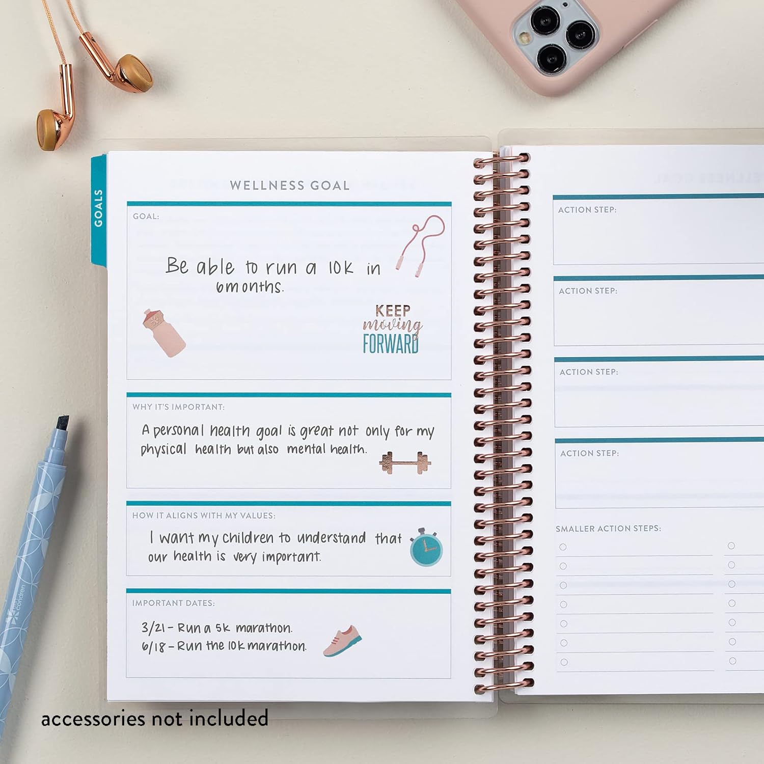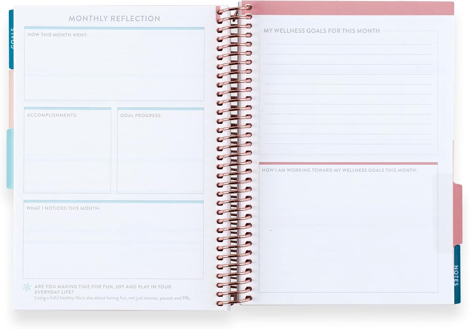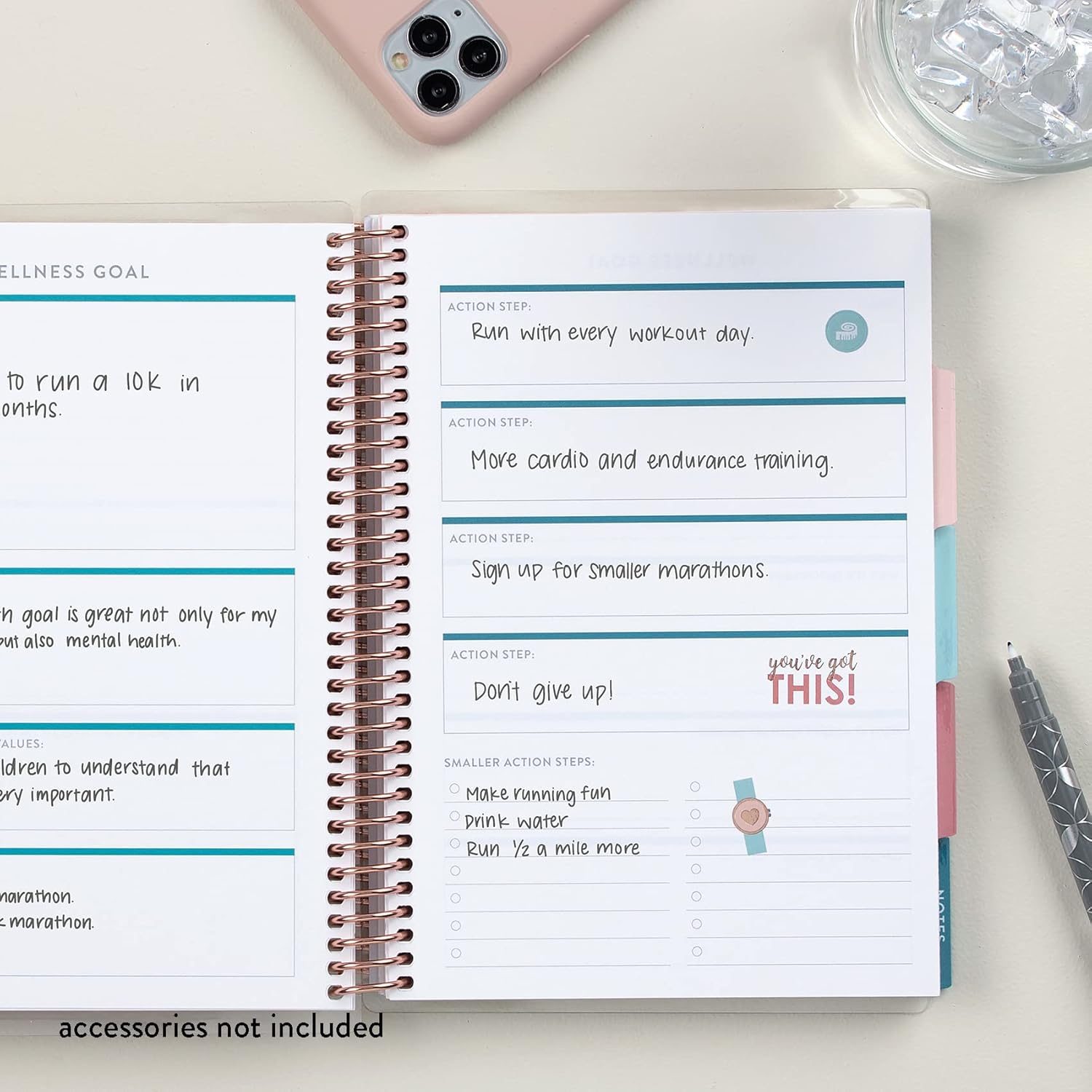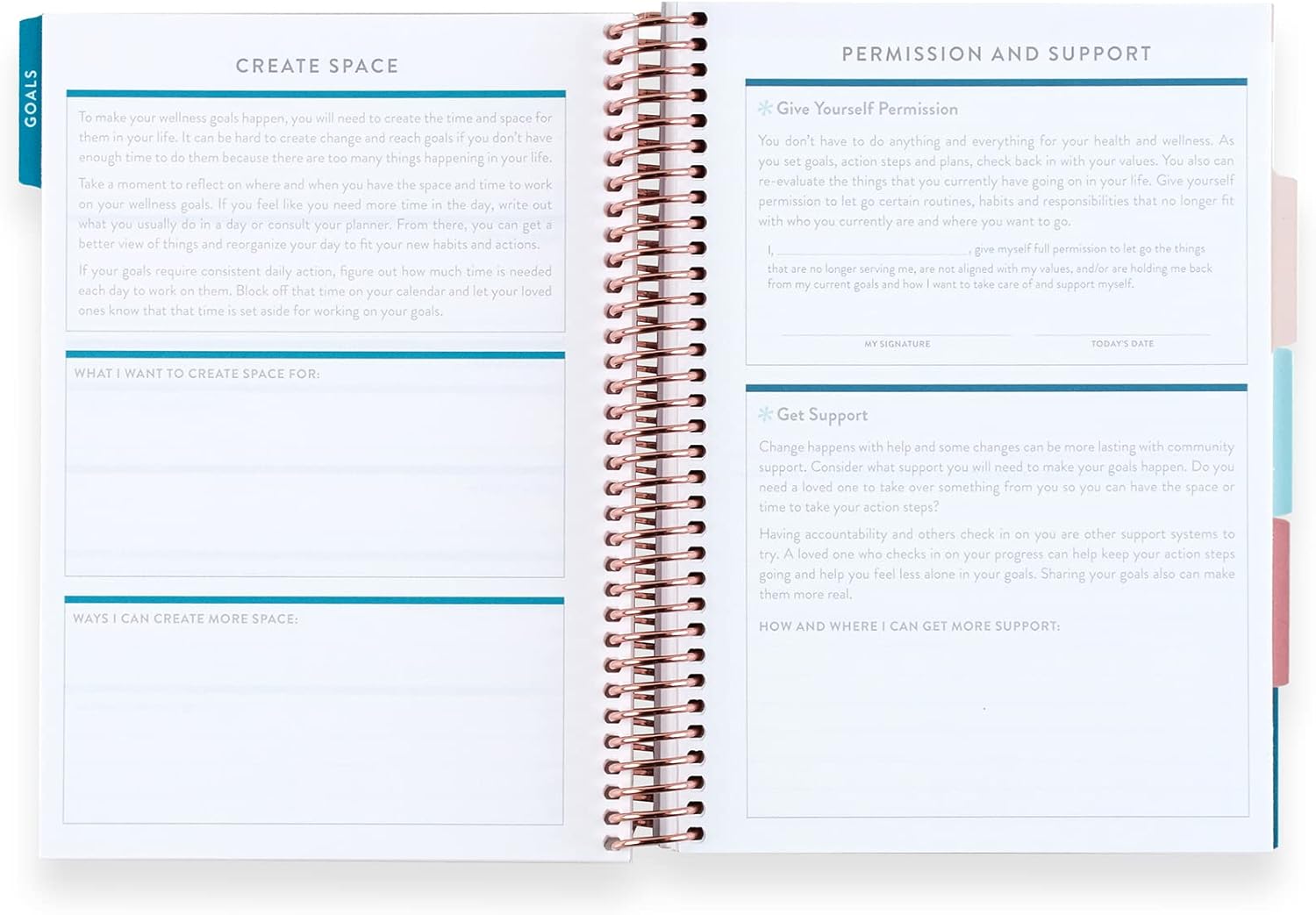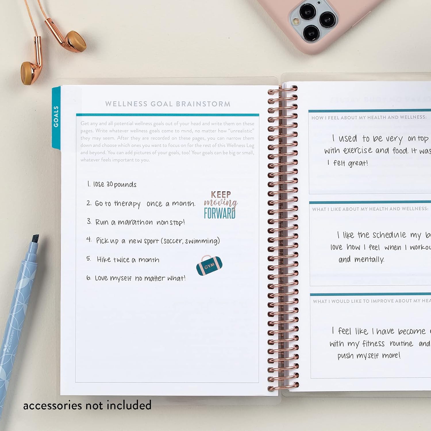 PORTABLE A5 SIZE: Prompted wellness planner featuring daily trackers for workouts, steps, water, sleep, mood, self-care, and more. All of this fitting in a portable A5 journal that can travel with you anywhere!