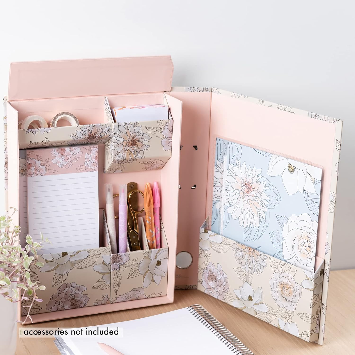 Erin Condren Ultimate Desk Organizer – Flora. Desk Organizer Set. 2 Accessory Compartment Sections, 1 List Pad Section, 3 Divided Compartments, and Paper Storage Section