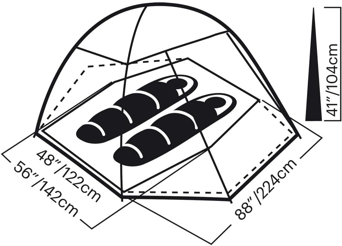 Features two doors and two vestibules; measures 7 feet, 4 inches by 4 feet, 8 inches at its widest point and 3 feet, 5 inches tall; packs to 6.5 by 20 inches; minimum weight of 5 pounds, 1 ounce.