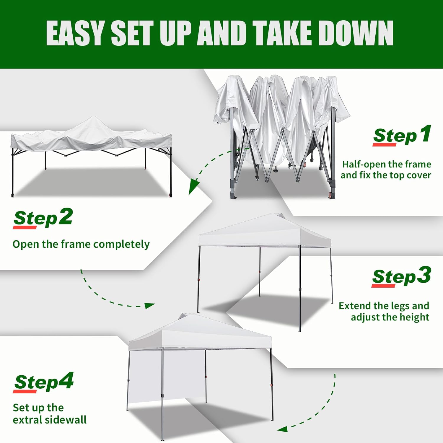 Eurmax USA NOMATTER 10x10ft Pop Up Canopy Tent,Portable Shelter Pop Up Canopy for Outdoor Events with 1 Removable Sidewall,Instant Canopies, Temporary Sunshade,Bonus 4 Sand Bags(White)