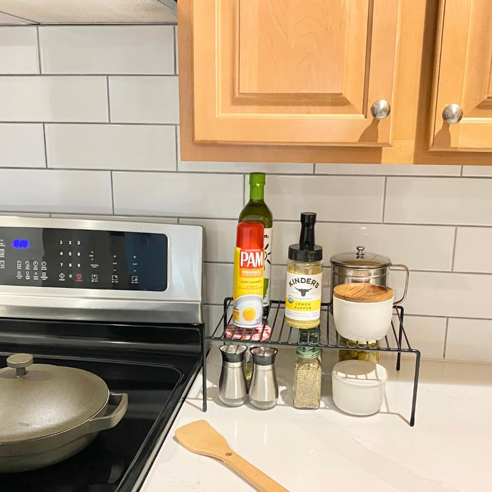 STURDY: This cabinet organizer is lightweight and sturdy, making it ideal for every day. Specifically manufactured using the finest grade steel. The kitchen storage shelves organizers have plastic feet and a durable PE Plastic coating. You can count on your kitchen cabinet shelf organizer to be strong and rust-resistant