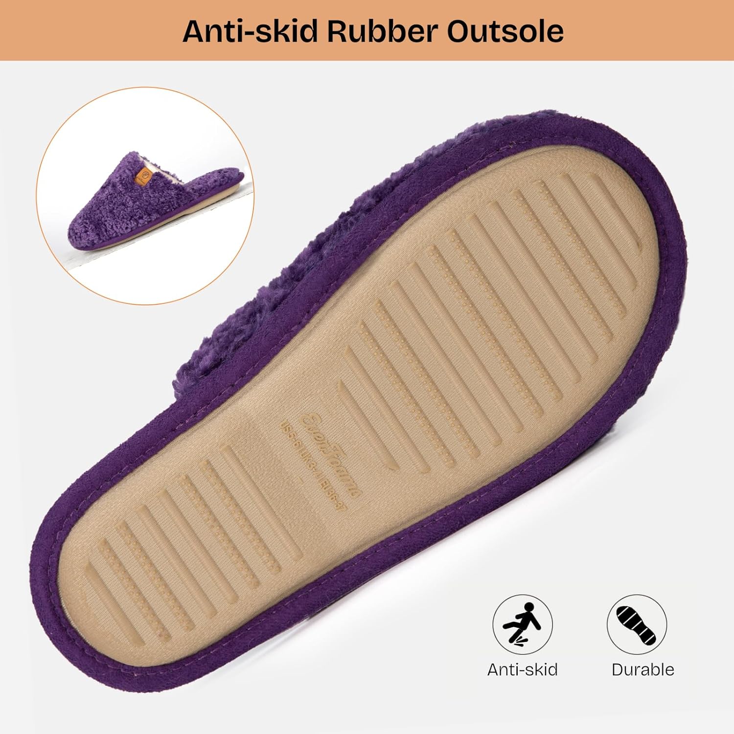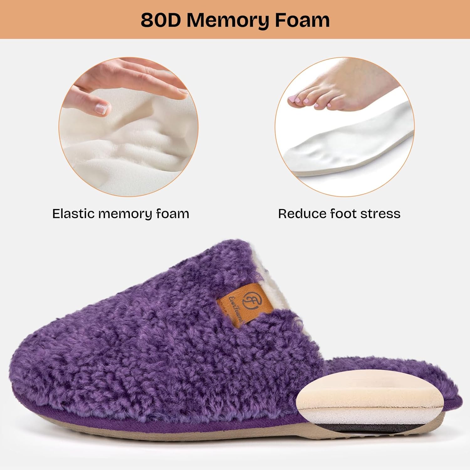 EverFoams Women’s Fuzzy Wool-Like Memory Foam Slip on House Slippers Cozy Soft Indoor Outdoor Ladies Home Shoes