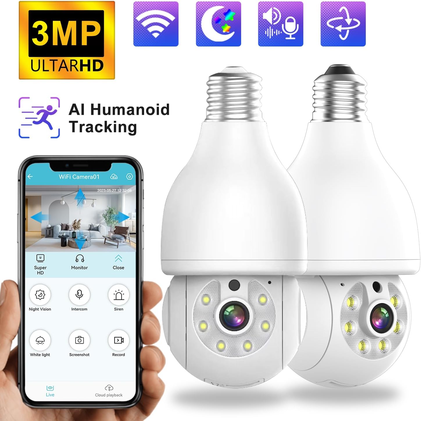 EVERSECU 2K HD Light-Bulb Security Camera, Wireless 2.4G&5Ghz Wifi, Indoor&Outdoor, Onvif-conformant, RTSP Stream, Work With Alexa, 360° View, Auto Tracking, 2 Way Audio, Motion Detection, Remote View