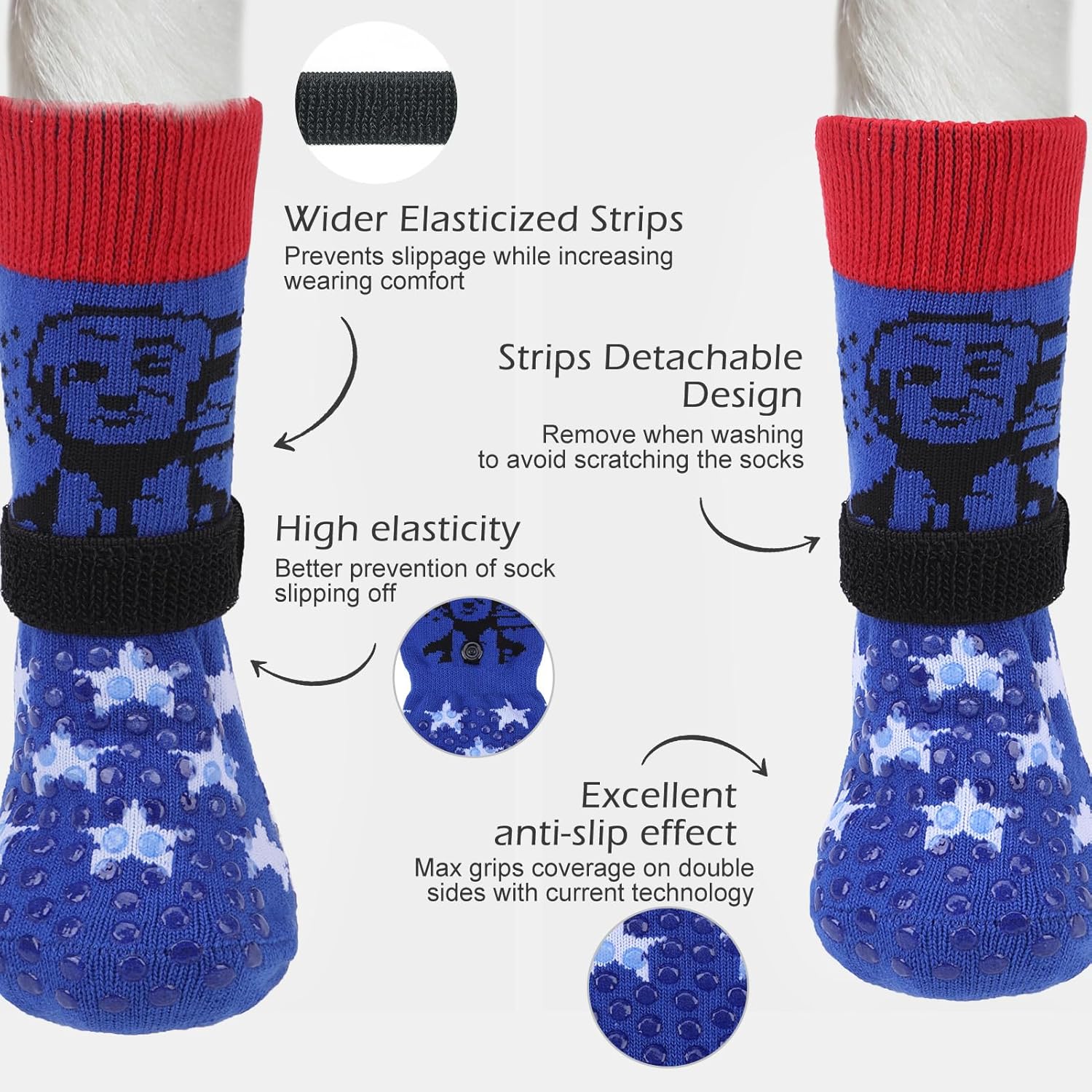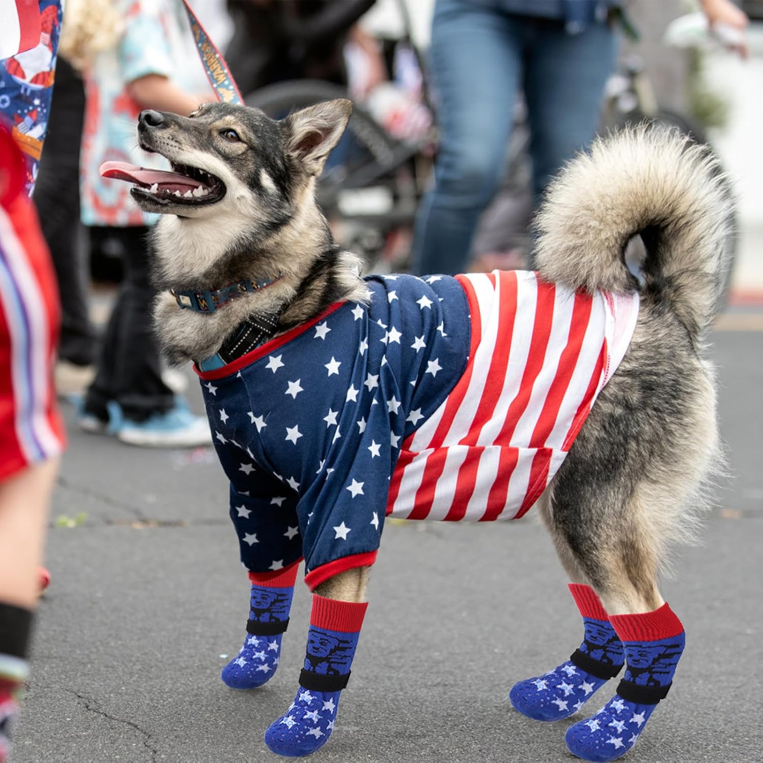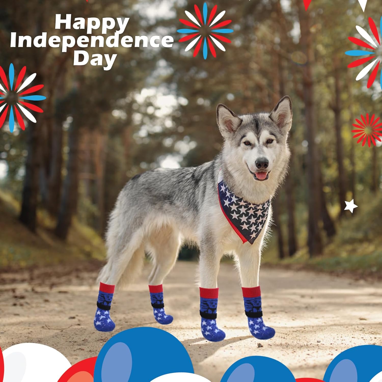 EXPAWLORER Anti-Slip Dog Socks – 4 Pcs 4th of July Dog Outfit, Non-Slip Double Side Paw Protector for Hardwood Floors, Prevent Licking Accessories for Hot Pavement