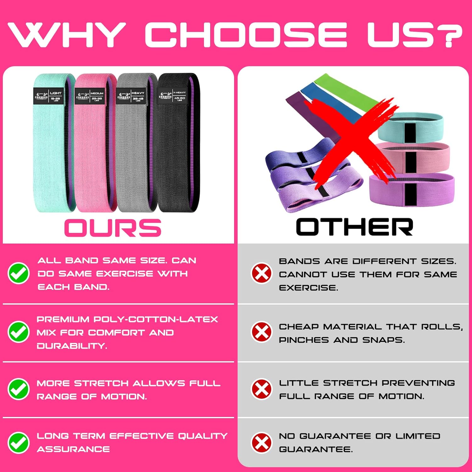 Fabric Resistance Bands for Working Out – Exercise Bands for Women and Men, Booty Bands for Legs and Butt, Yoga, Pilates, Rehab, Fitness and Home Workout