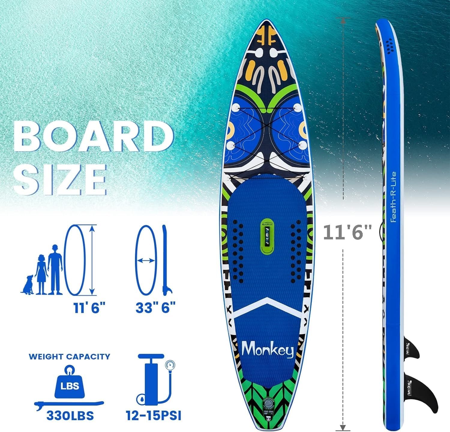 【Lightweight and Durable】The FEATH-R-LITE inflatable paddleboard is made from premium materials. Measuring 11’6″ x 33″ x 6″, it is ultra-lightweight without sacrificing durability. The oversized board is suitable for adults of all skill levels.