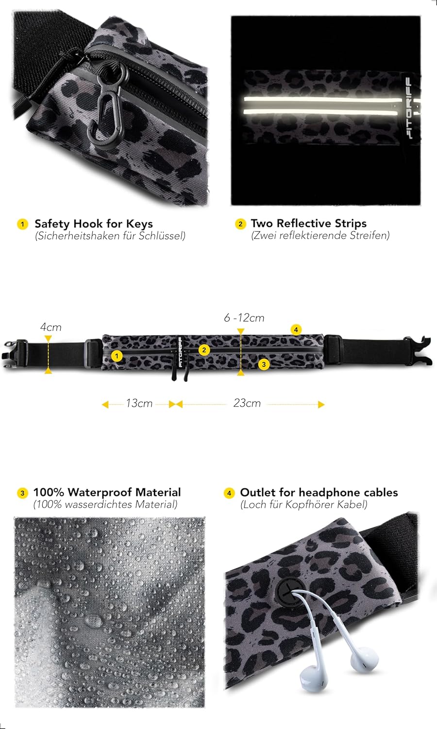 4. Increased Visibility; Reflective Strips: For your dusk or night runs, we’ve equipped our running belt with two reflective strips, enhancing your safety with improved visibility.