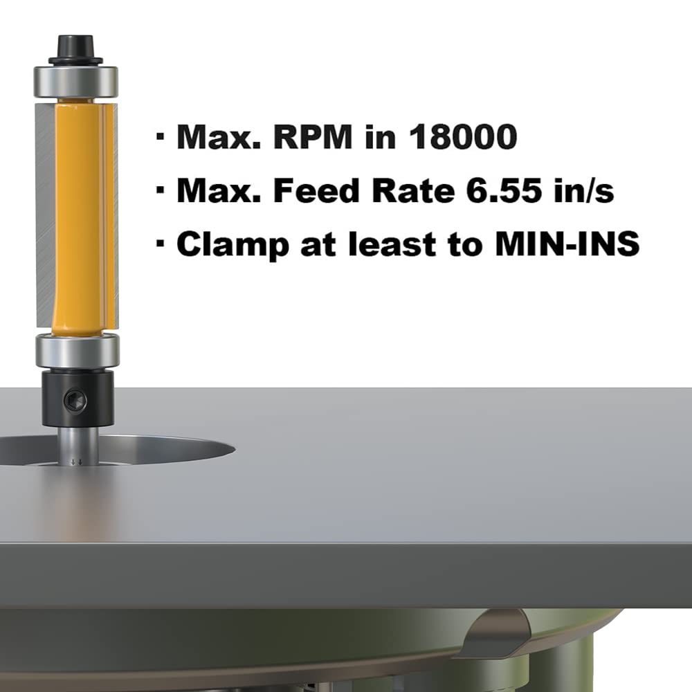 2.[Safety] -FivePears router bit with anti-kickback design provides higher stability and less vibration. The RPM≦18000. Pushing slowly can help you get a smoother cut.