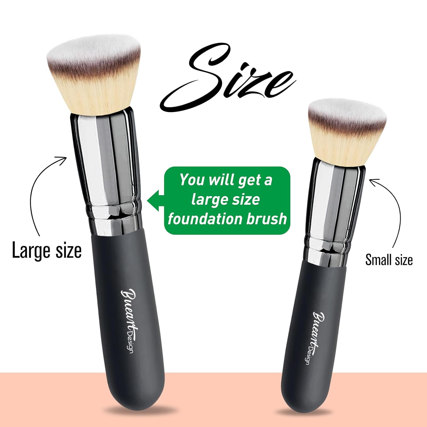 【Made of BueartTech Fibers&NO SHEDDING】 This is one of the best Foundation Brush made of An exclusive selection high performance Natural synthetic fibers. Boasts technologically advanced filaments with specialized tips. Holds & delivers makeup perfect and without soak up excessive amounts of foundation cream like other loose hair or uncompact makeup kabuki brushes.