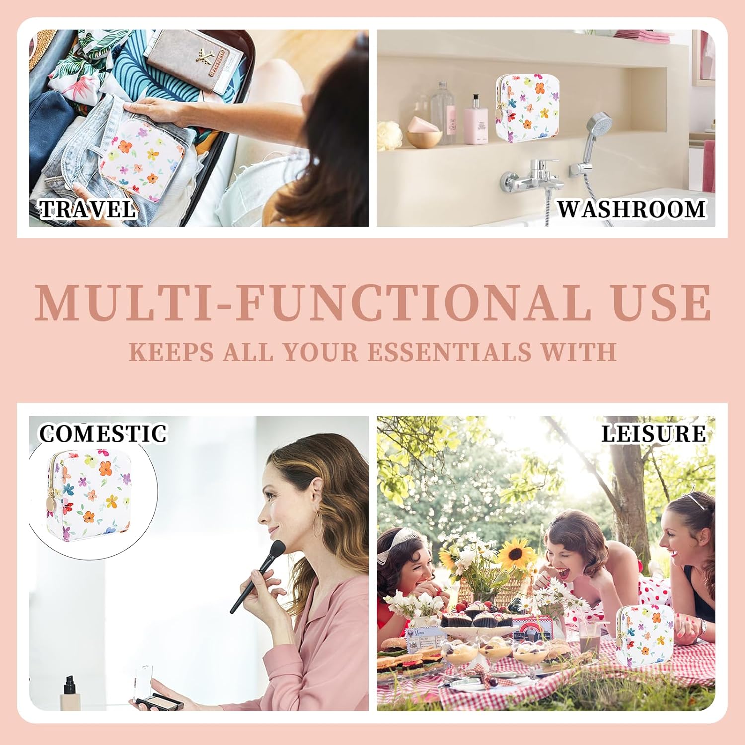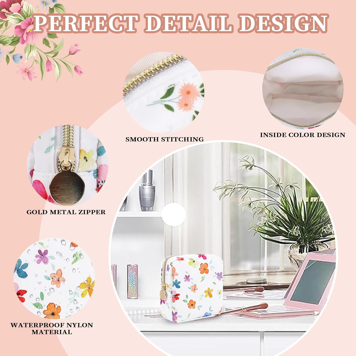 Floral Mini Makeup Bag Cosmetic Bags for Women and Girls, Coquette Aesthetic Makeup Organizer Bag Nylon Zipper Pouches, Travel Toiletry Bag Coin Pouch Sanitary Napkin Storage Bag(Colorful Floral)