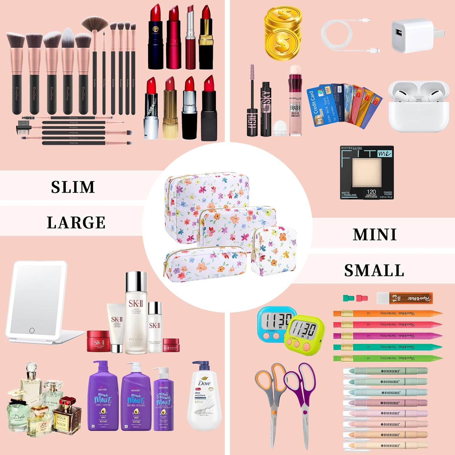 🌺【Most Style & Size Choice】: The floral makeup bag has seven combinations of colors and flowers, you can choose according to your personalized requirements. Each style of pouch has four sizes, Mini(4.75”*2”*5”), Slim(2.75*8”*2.75”), Small(9.5”*2”*5”) and Large(11”*5”*8”), and , catering to your different needs.