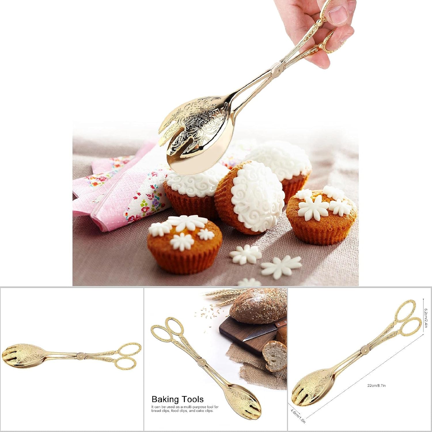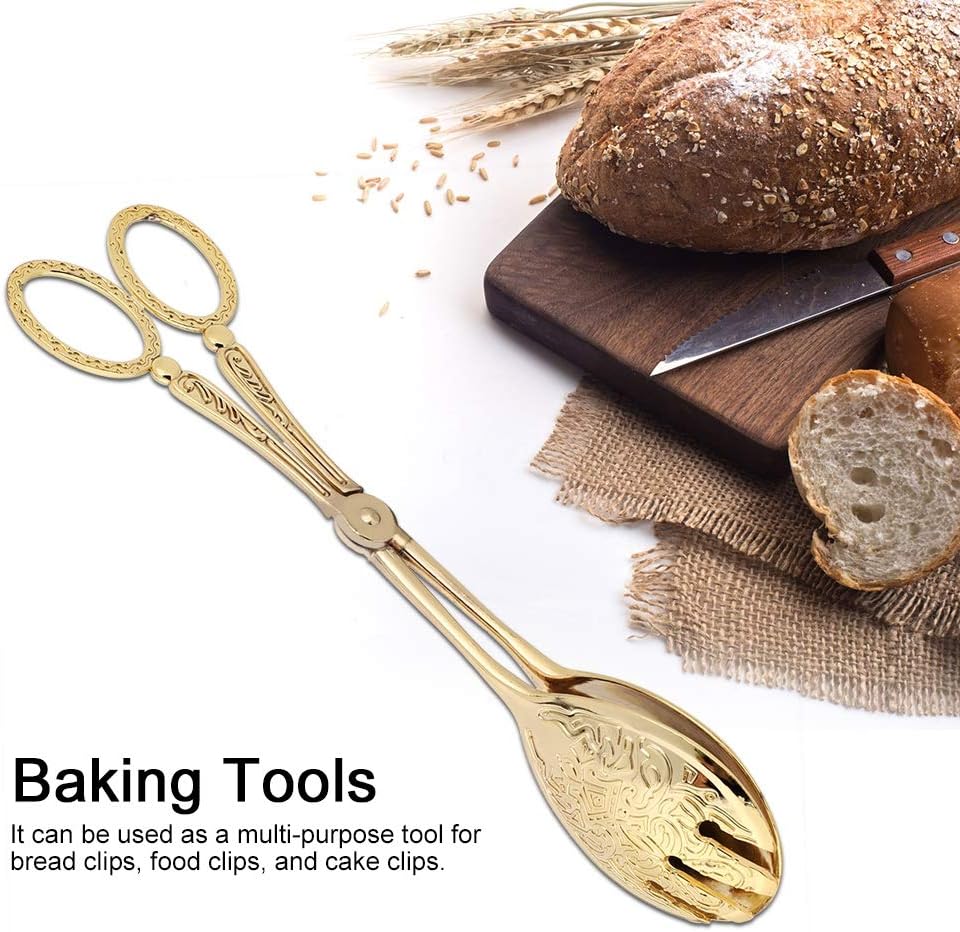 Food Tongs Zinc alloy Cooking Clips Gold Scissors Shape Buffet Clamps With Exquisite Pattern Practical Kitchen Accessories Multipurpose Serving Clip for Salad Pastry Barbecue (Pointed head)