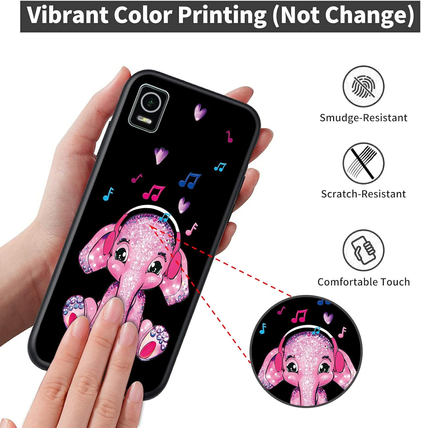 for Cricket Debut Smart Phone Case 2022 5.5″ Elephant Music Design, Shockproof Slim Lightweight for Cricket Debut Smart Case Protective TPU Cover