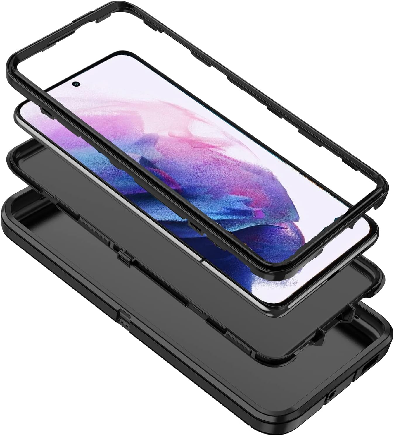 for Galaxy S21 Plus Case,Shockproof 3-Layer Full Body Protection [Without Screen Protector] Rugged Heavy Duty High Impact Hard Cover Case for Samsung Galaxy S21 Plus,All Black