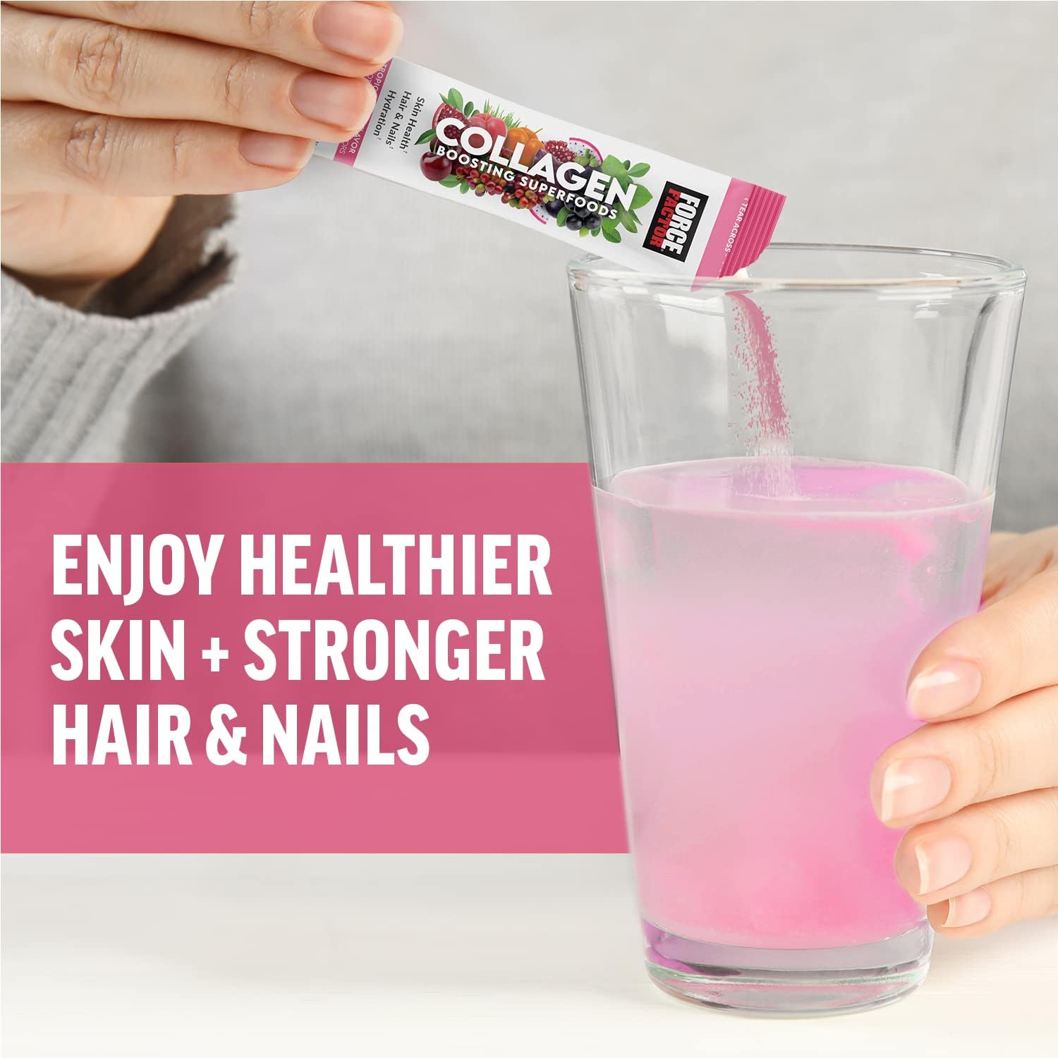 Force Factor Collagen Boosting Superfoods with Biotin, Hyaluronic Acid, Bamboo, and Hair, Skin, and Nails Vitamins, Nail Strengthener and Skin Supplement, Tropical Fruit Flavor, 20 Stick Packs