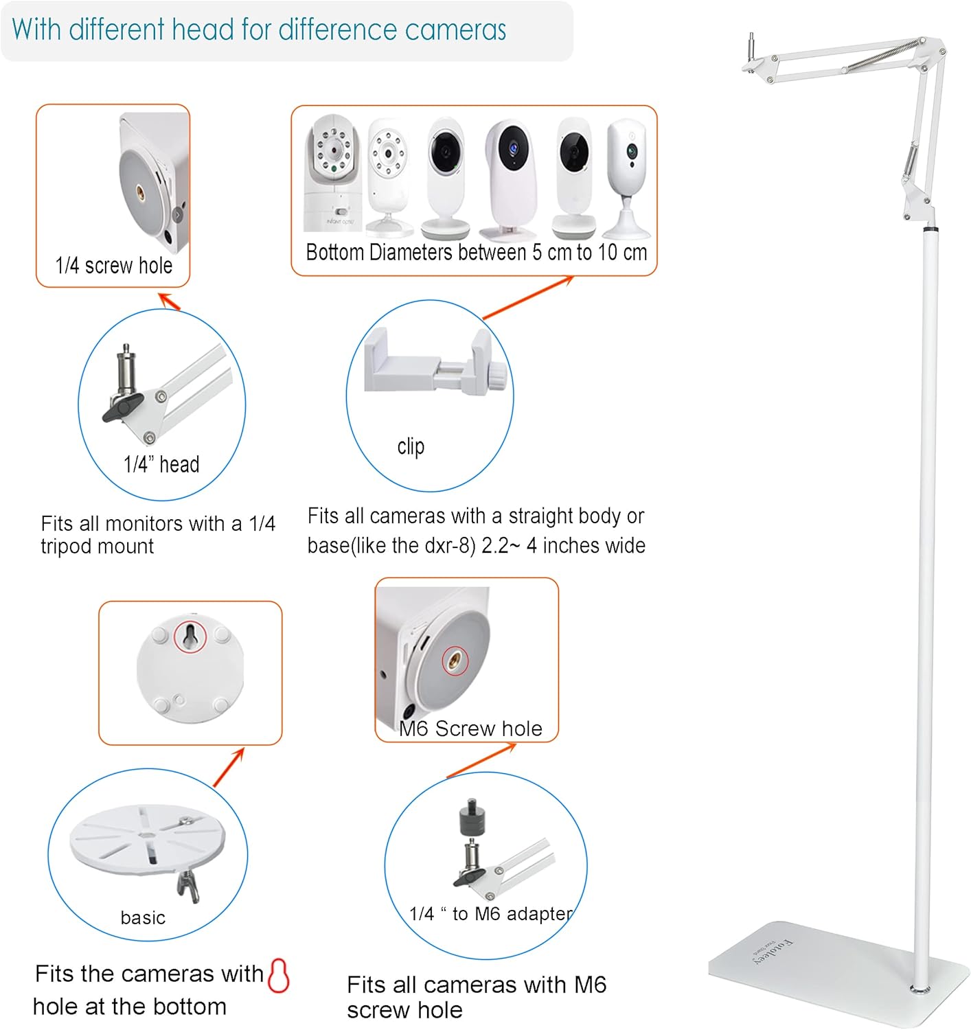FITS MOST CAMERAS: with different mounting head for different types of cameras, compatible with Nanit Pro Smart, Kasa, VTech, Owle, Owlet Cam 2, Nooie invidyo, SwitchBot, BJS Cubo Ai Plus and other cameras