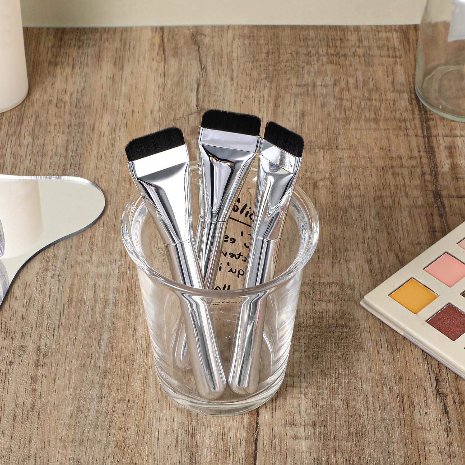 Foundation Brush 3 Pcs Makeup Flat Brushes Thin Blade Brush Portable Facial Brushes Cream Spatulas Tools Powder Scrubber Liquid Brush Soft Bristles Brush Fit Salon, Home, Travel (Silver)