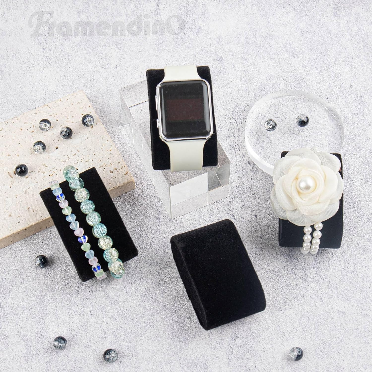 Framendino, 12 Pack Black Velvet Bracelet Pillow Watch Display Pillow Jewelry Display Stand Covered with Velvet for Small Business Selling Home Bracelet Watch Bangle Display Storage