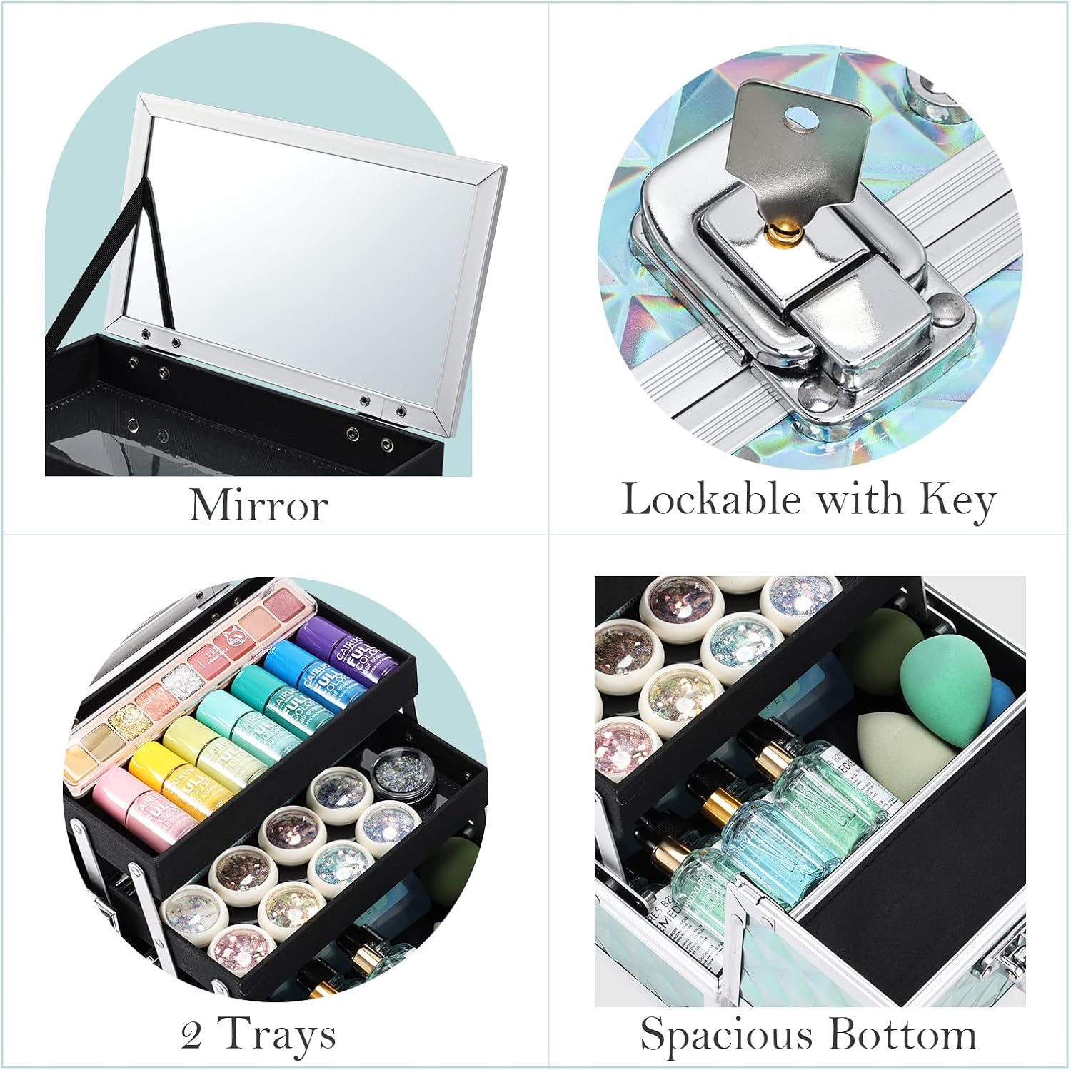 Portable & Lockable: The makeup train case is in a portable size handle. It is also lockable with key for privacy and security in case of traveling.
