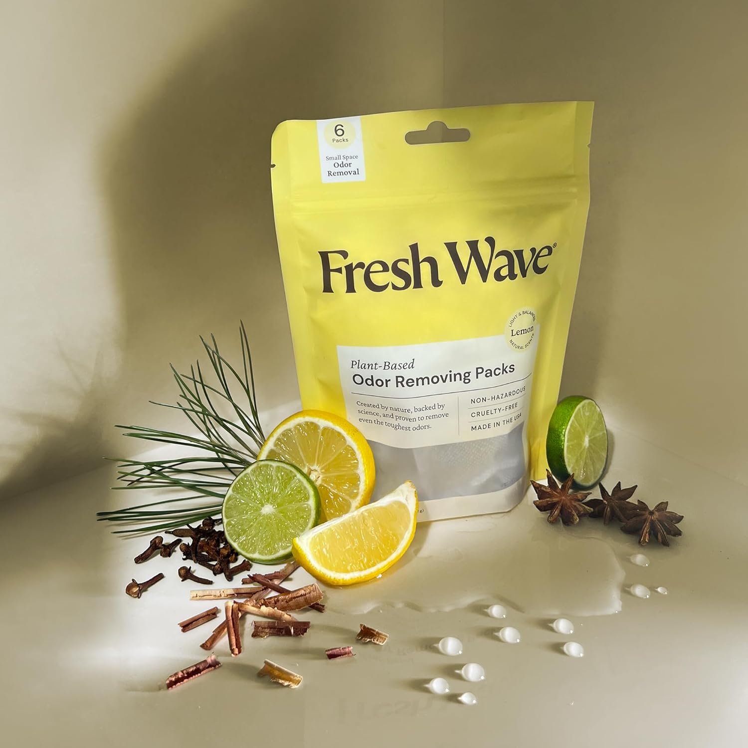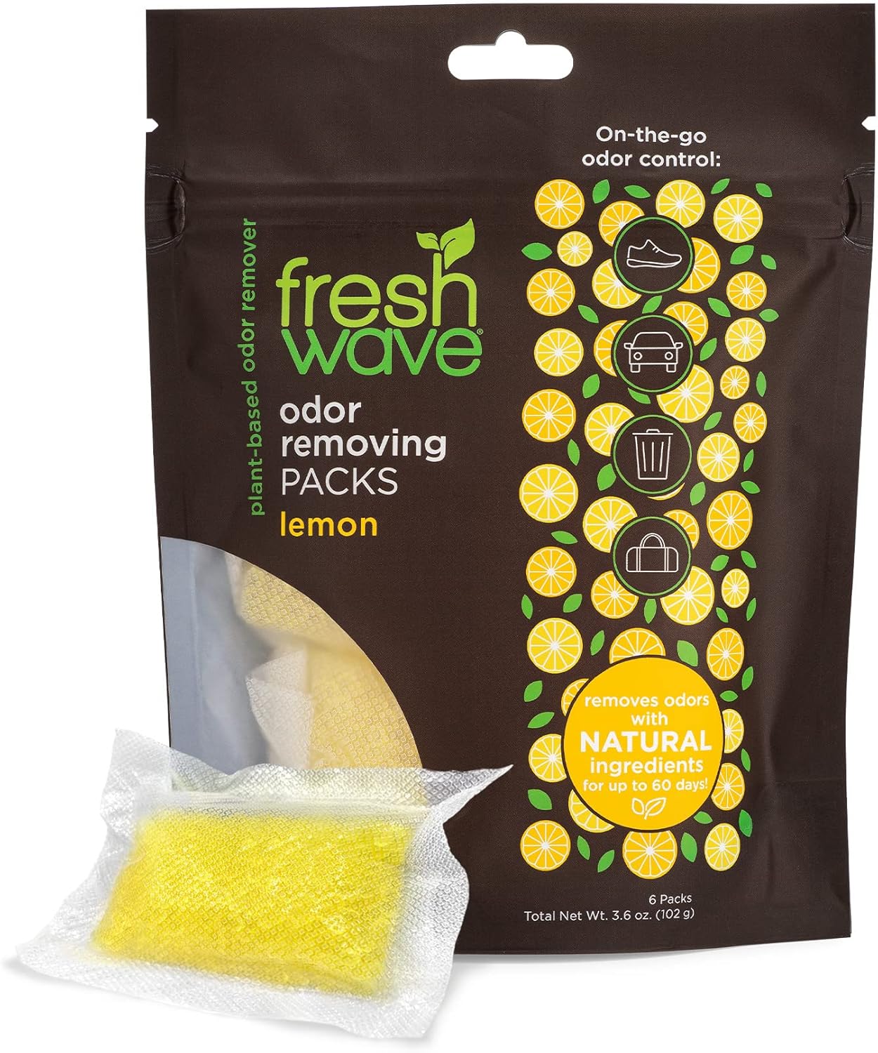 Fresh Wave Lemon Odor Eliminating & Deodorizing Packs | Bag of 6 | Safer Odor Relief for Small Spaces | Natural Plant-Based Odor Eliminator | Odor Absorbers for Home