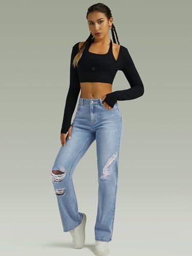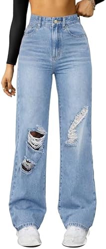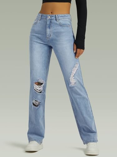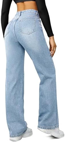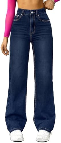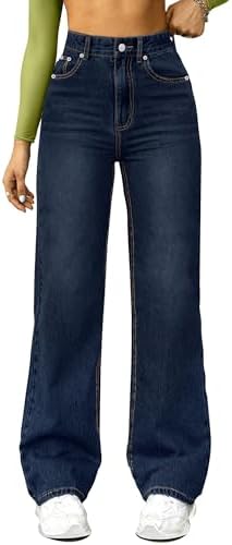 FUNUCA Straight Leg Jeans for Women,High Waisted Wide Leg Loose Microelastic Boyfried Denim Pants