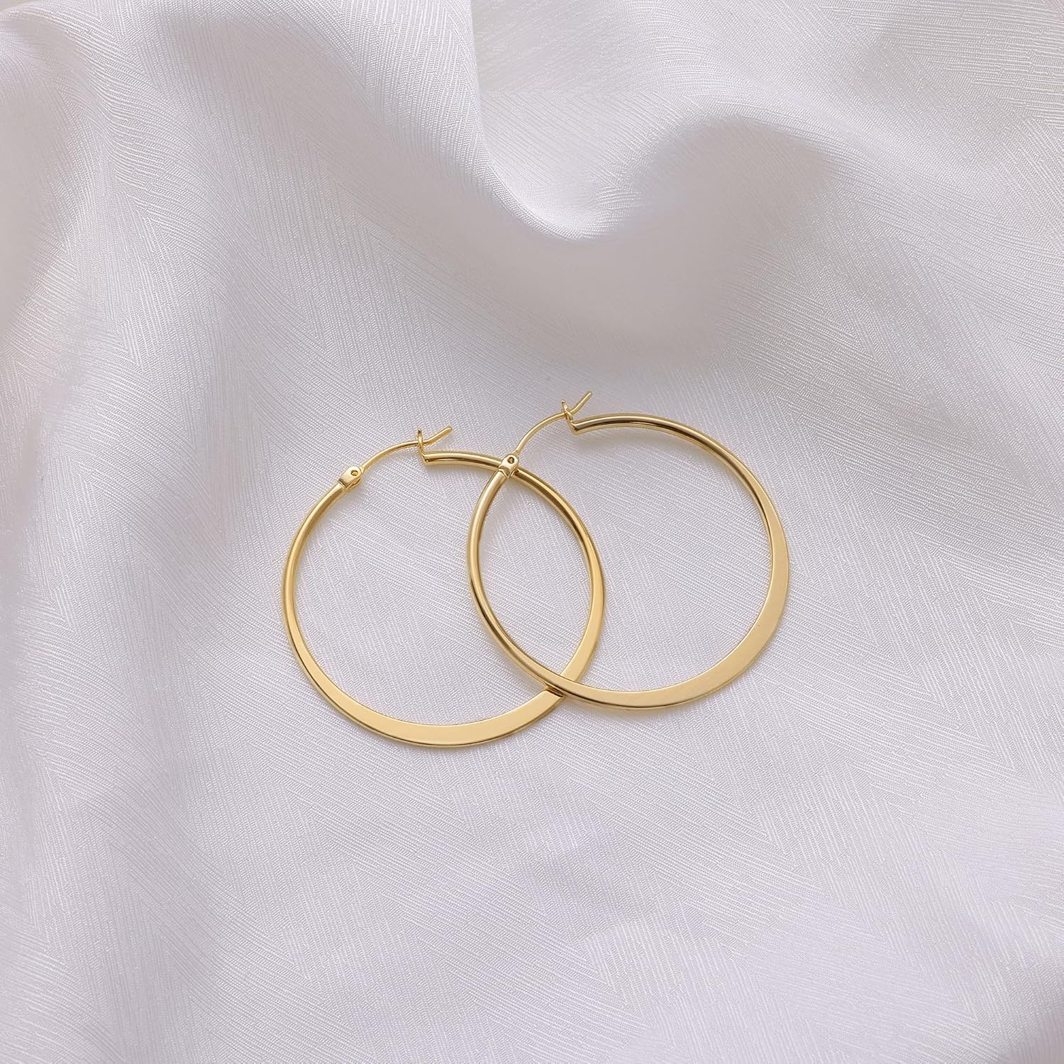 Gacimy Flattened Gold Hoop Earrings for Women, 14K Real Gold Plated Hoops with 925 Sterling Silver Post,Hypoallergenic Lightweight Earring