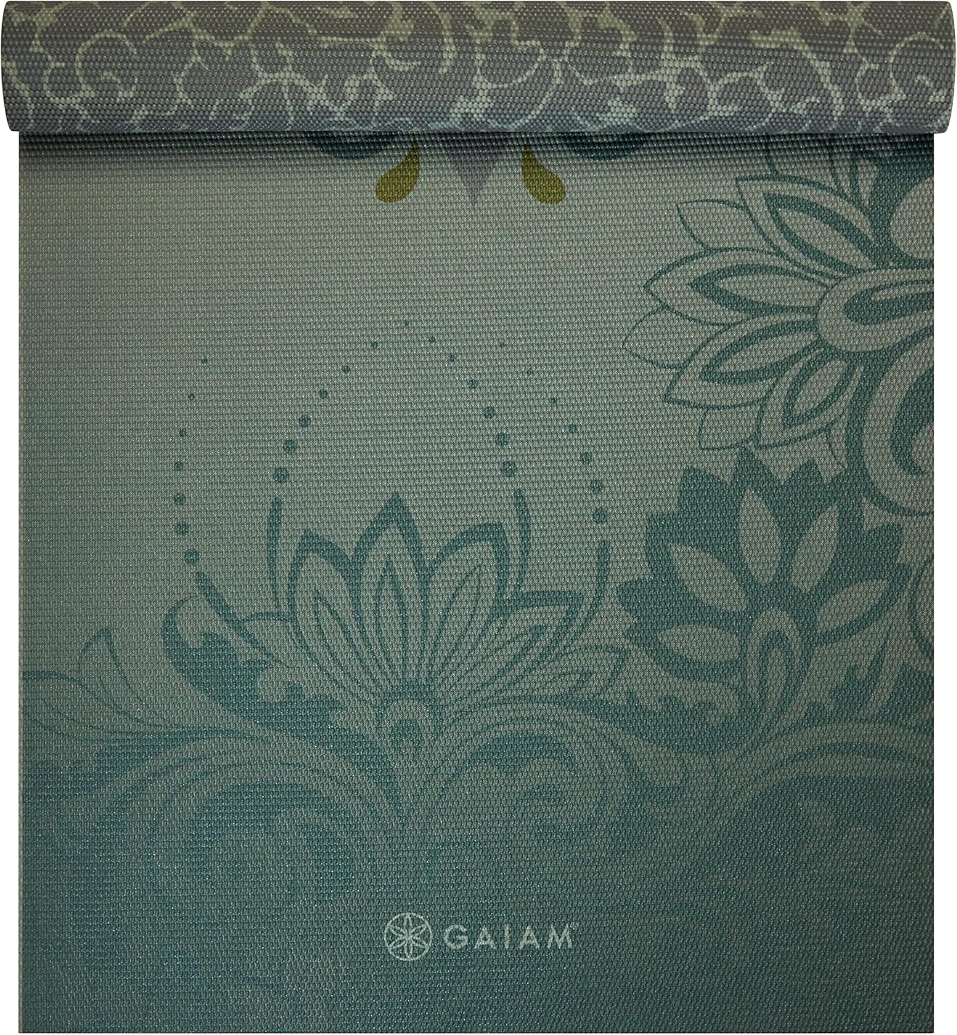 Durable and chic, Gaiam’s Premium Print Reversible Yoga Mats provide a stable, sticky, non-slip 5/6mm cushioned surface for your yoga practice. Perfect for home or studio use, this mat ensures the safety and comfort you need to enhance proper alignment and maintain poses and the additional cushioning helps to protect joints. Manufactured free of the top six most harmful phthalates, this mat is a healthier choice for both you and the planet! Please note a packaging change from 5mm or 6mm, but rest assured it is the same size and style mat, just in new and improved packaging. Also, printed yoga mats may release a harmless odor when first unwrapped. For best results unroll and air out your mat for 2-3 days before use. Manufactured free of the top six most harmful phthalates, this mat is a healthier choice for both you and the planet! Please note that printed yoga mats may release a harmless odor when first unwrapped.