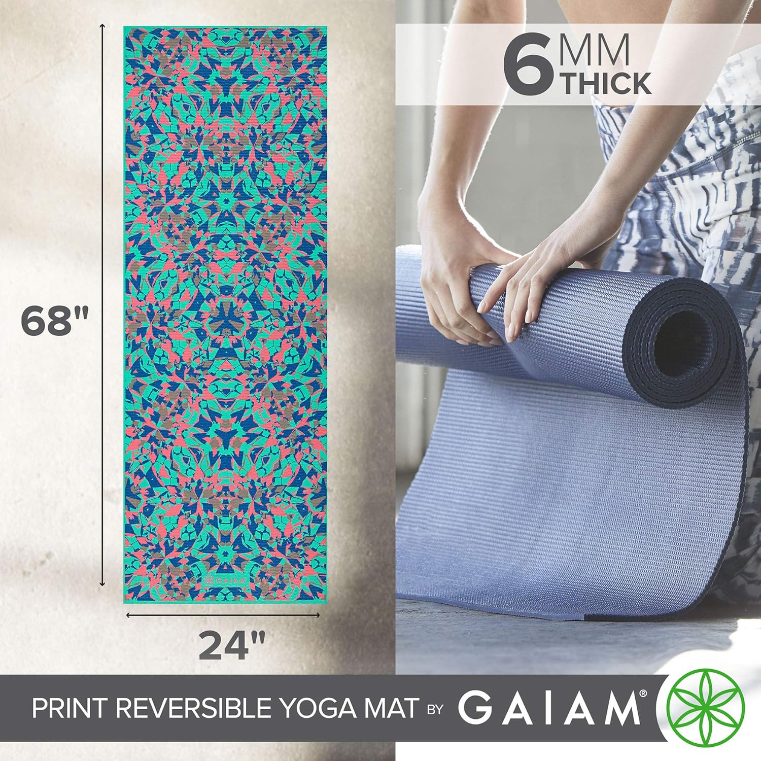 Gaiam Yoga Mat – Premium 6mm Print Reversible Extra Thick Non Slip Exercise & Fitness Mat for All Types of Yoga, Pilates & Floor Workouts (68″ x 24″ x 6mm Thick)