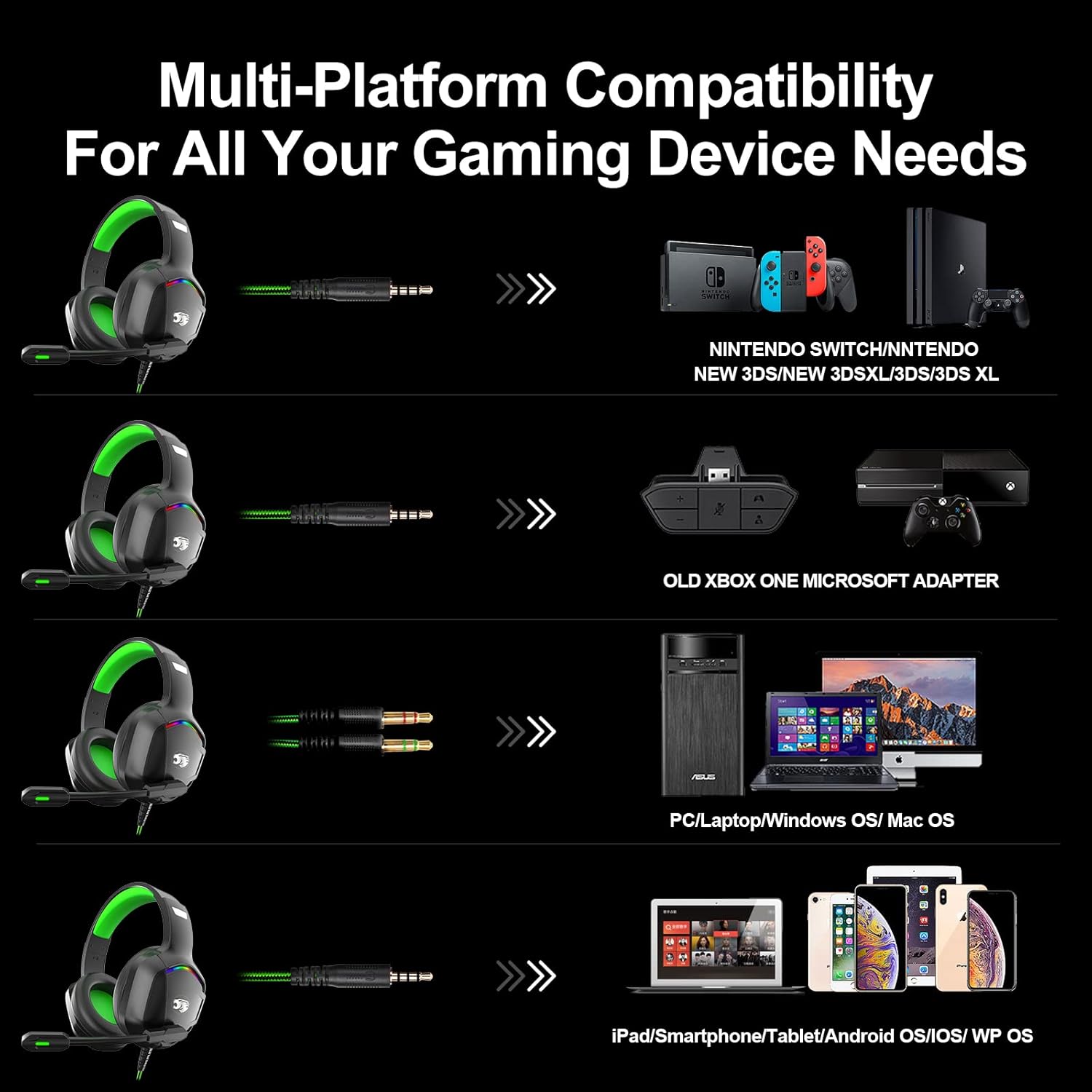 【Multi-platform Compatible】 Gaming headset with microphone for PC, PS4, PS5, Xbox One Series X/S (older version requires adapter), Nintendo 3DS, Switch, Laptop, PSP, Tablet, iPad, Computer, Mobile Phone, 3.5mm jack device.