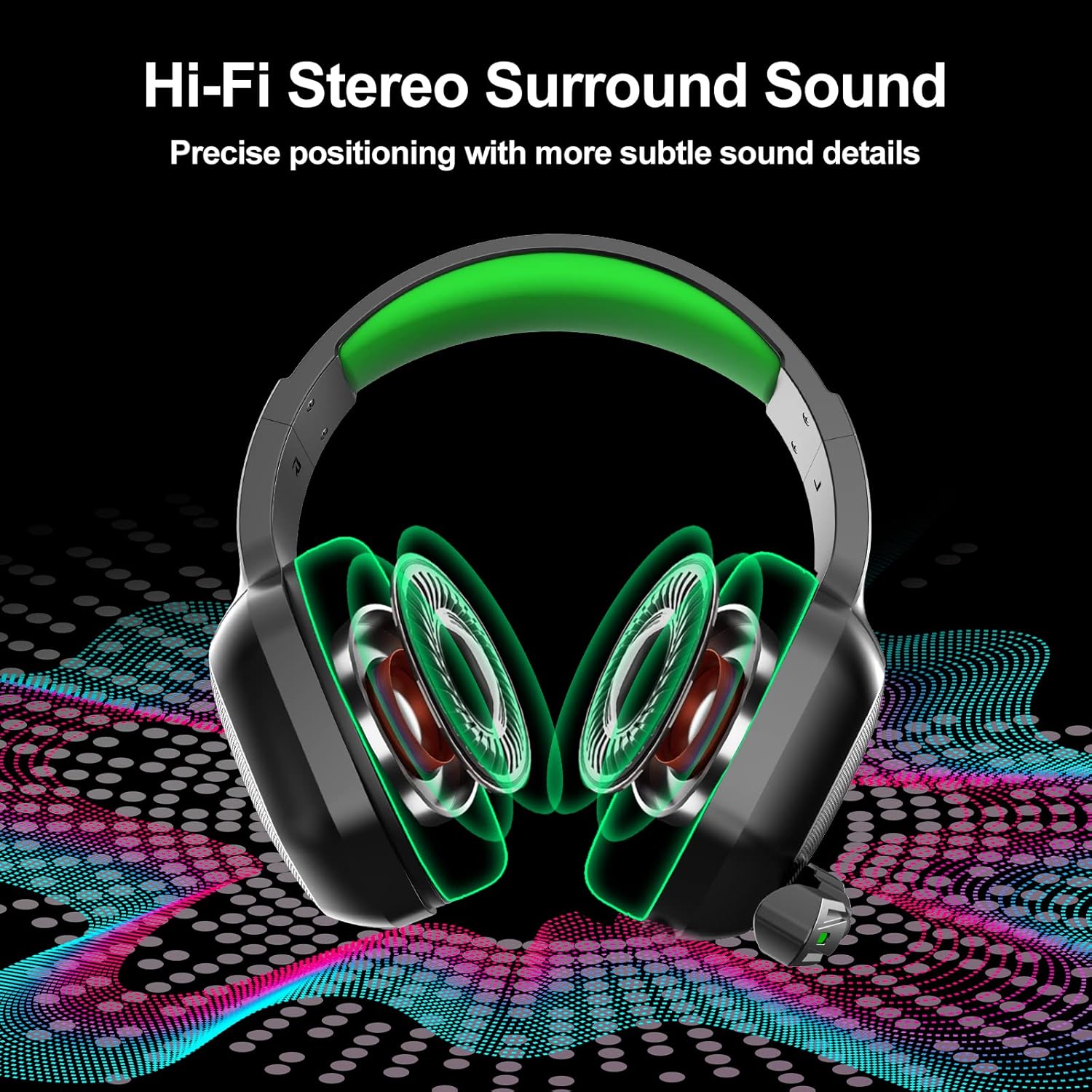 Gaming Headset with Microphone for Pc, Xbox One Series X/s, Ps4, Ps5, Switch, Stereo Wired Noise Cancelling Over-Ear Headphones with Mic, RGB, for Computer, Laptop, Mac, Nintendo, Gamer (Green)