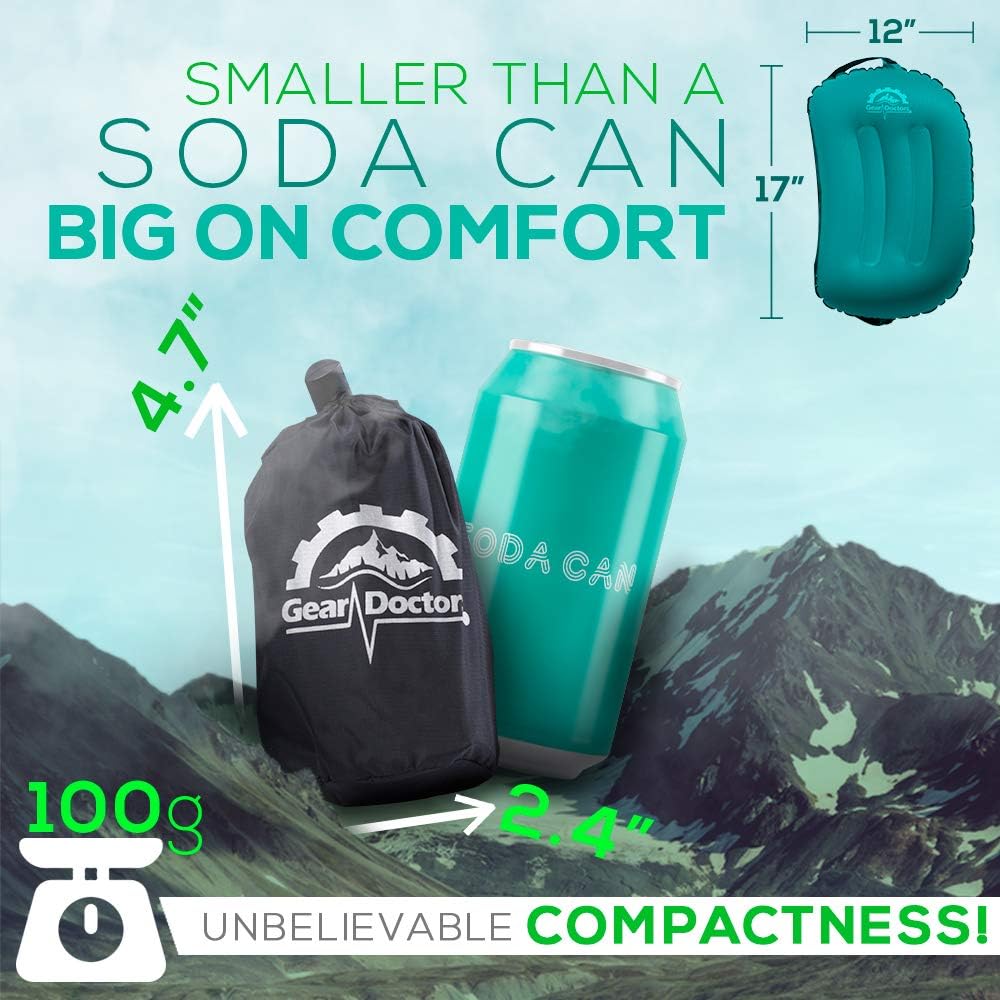 Gear Doctors Inflatable Pillow, Teal, Camping, Ultralight, 12x17x4.3 inches, 3.5 oz