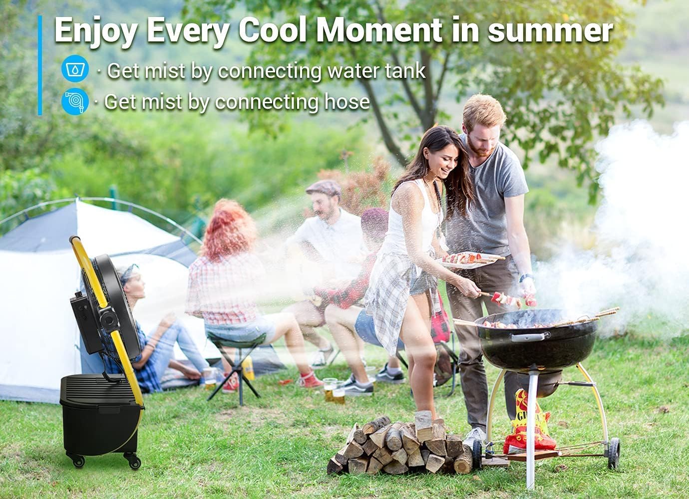 – STRONG AND SATE MISTING FAN: It has a strong and detachable metal bracket, which is easy to assemble and disassemble, and will not occupy too much space in the trunk of your car. With thickened coating, your outdoor fan is IPX4 water resistant, UV resistant. Ideal for outdoor usage anytime.