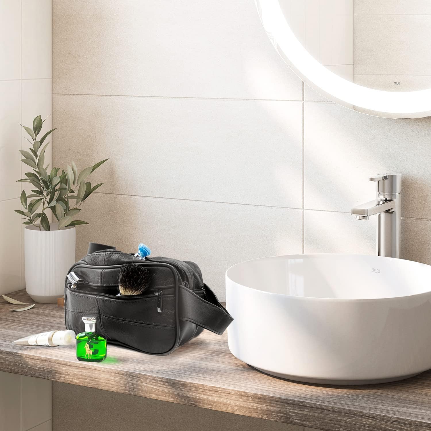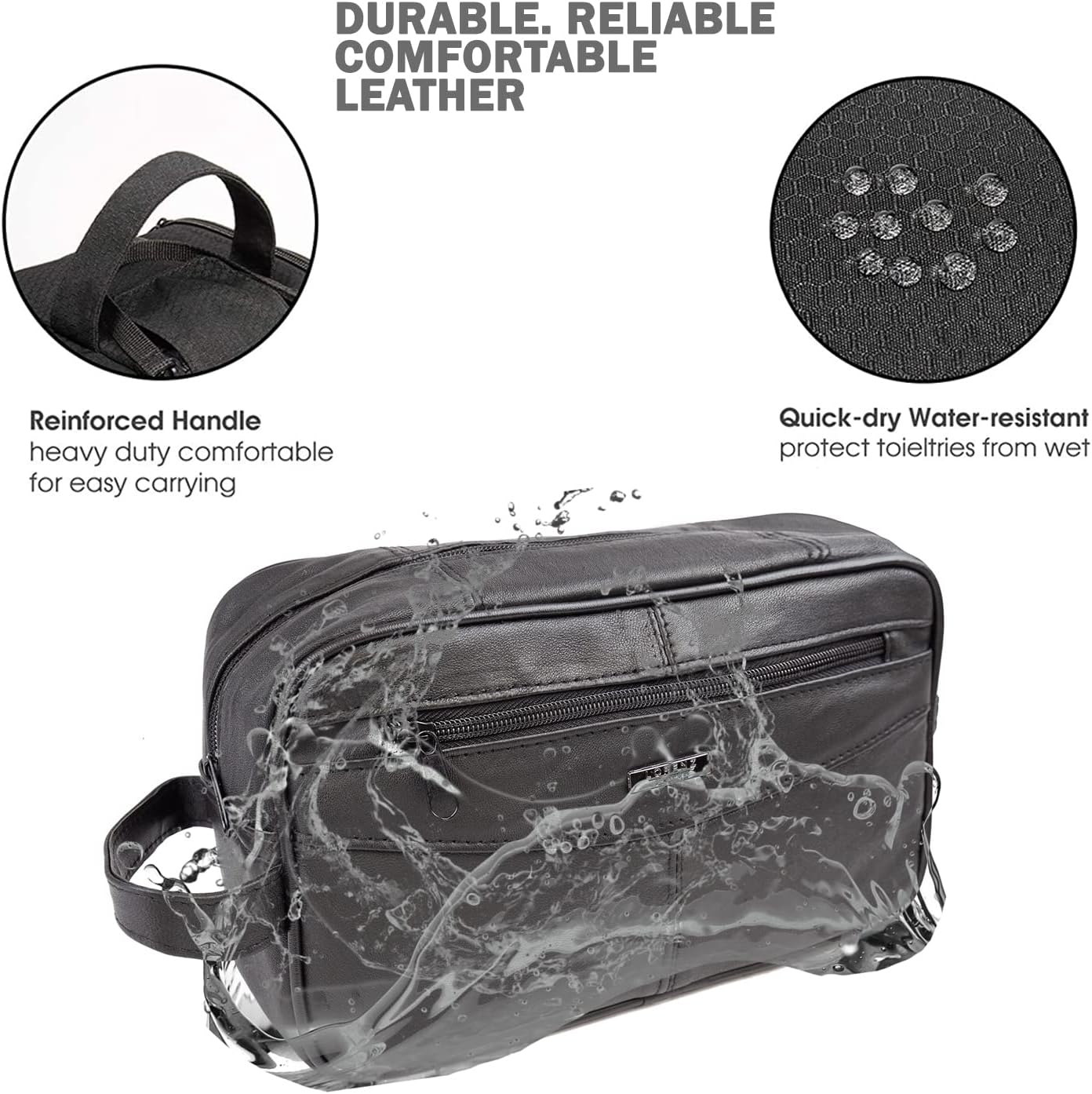 [Unique Leather Design] – Mens toiletry large wash bag have high capacity for shaving kit, and makeup/cosmetic bag all in one. Double large compartment easy to carry your toiletries, whole bottle of conditioner, shampoo, and shower gel