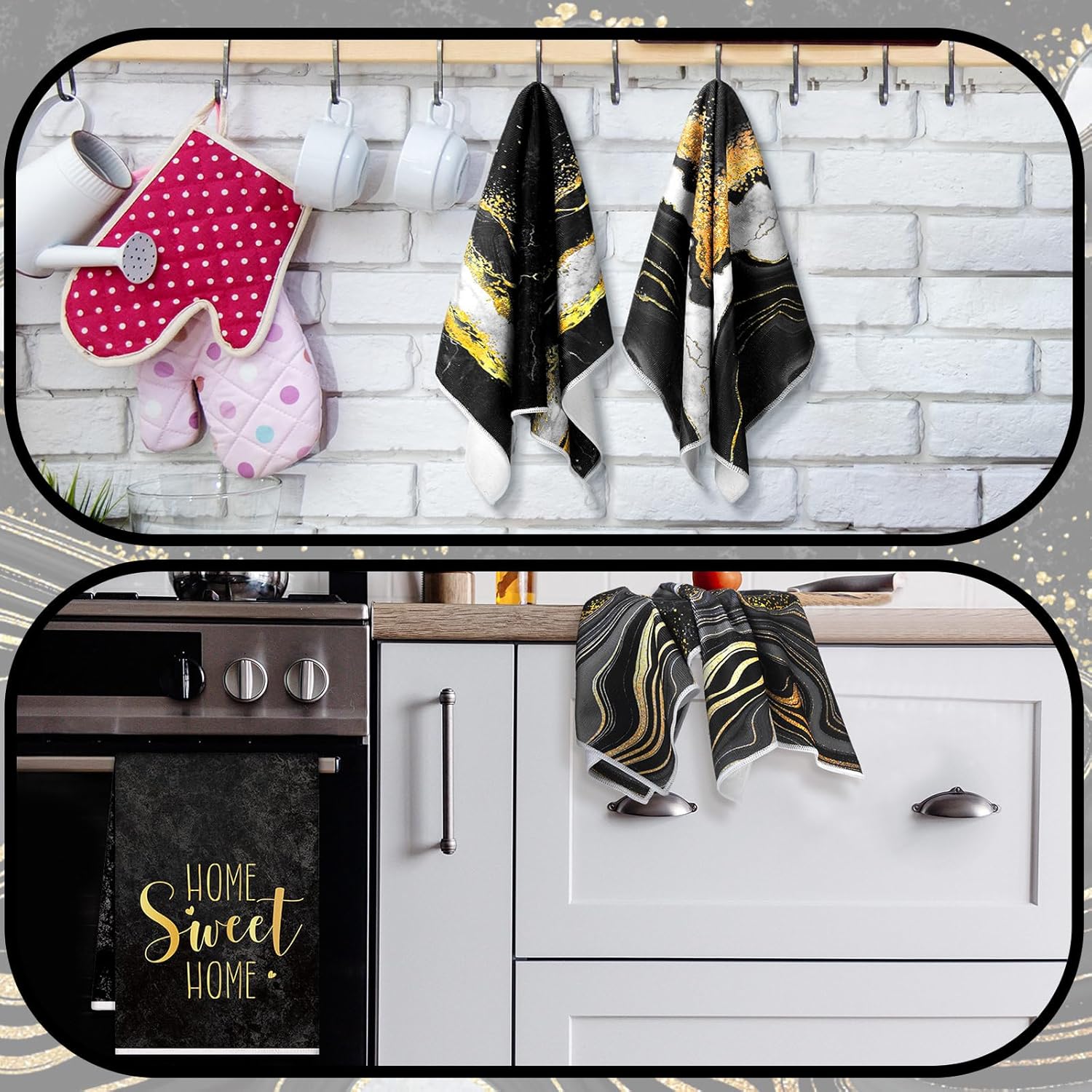 Marble Style Design: the kitchen towel set is designed with the theme of black gold marble, and printed with the dark color, delicate and lovely, with black as the main colors, to create a fresh and natural atmosphere
