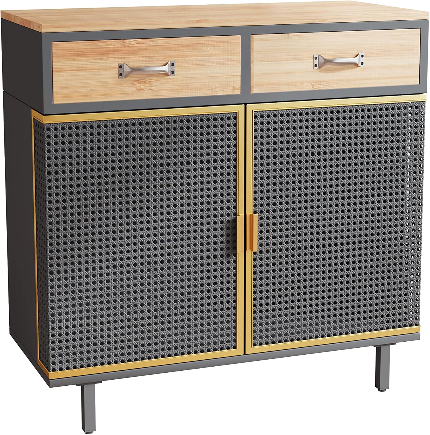 GIA Home Furniture Series Modern Carbonized Bamboo entryway Sideboard with 2 Door and Drawers,Buffet Storage Cabinets for Dinning,Living Room,Kitchen,Cupboard Console Table, Dark Gray