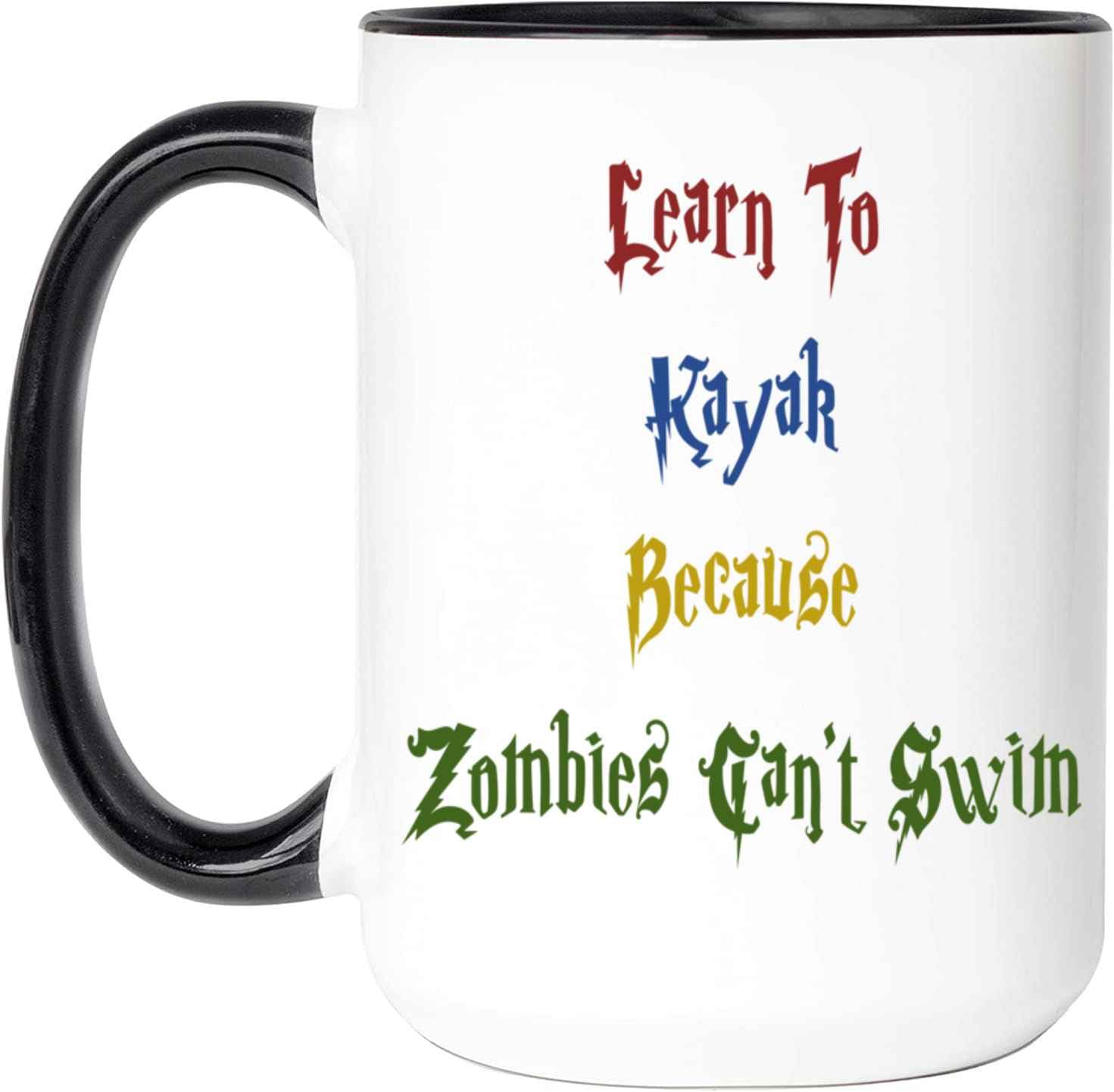 Gift Design Idea Funny Gift for Beginner Kayakers – Learn To Survive Zombies with This Kayak Paddling Guide – 15 Oz White Ceramic Black Inner Mug