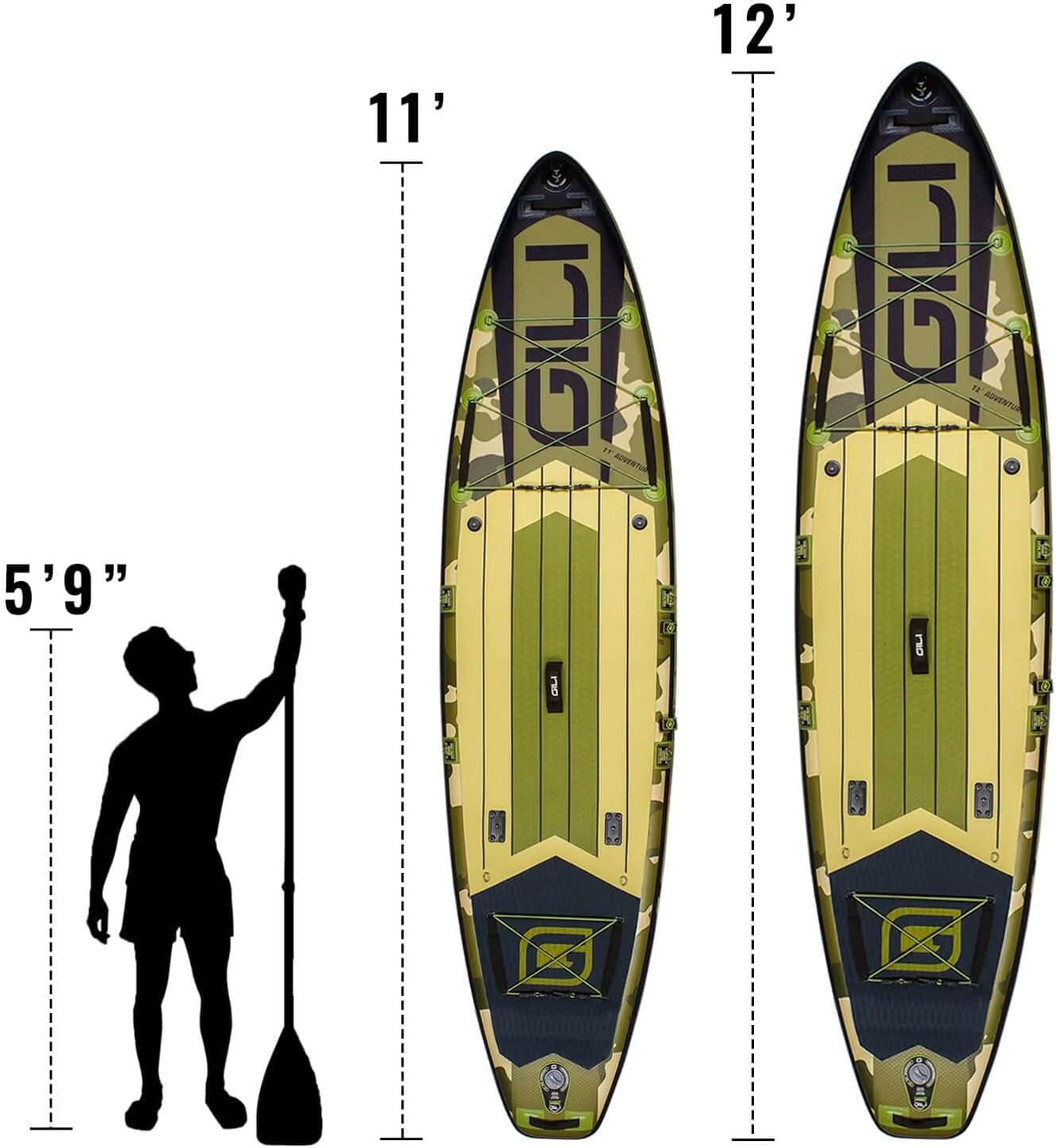GILI Adventure Inflatable Stand Up Paddle Board Package: Lightweight, Durable Touring SUP for Adults: Non-Slip Deck Diamond Rear Kickpad (12′, Camo), GILI Tabla de remo inflable de aventura Paquete: SUP de turismo ligero y duradero para adultos: almohadilla trasera de diamante antideslizante (12 pies, camuflaje)
