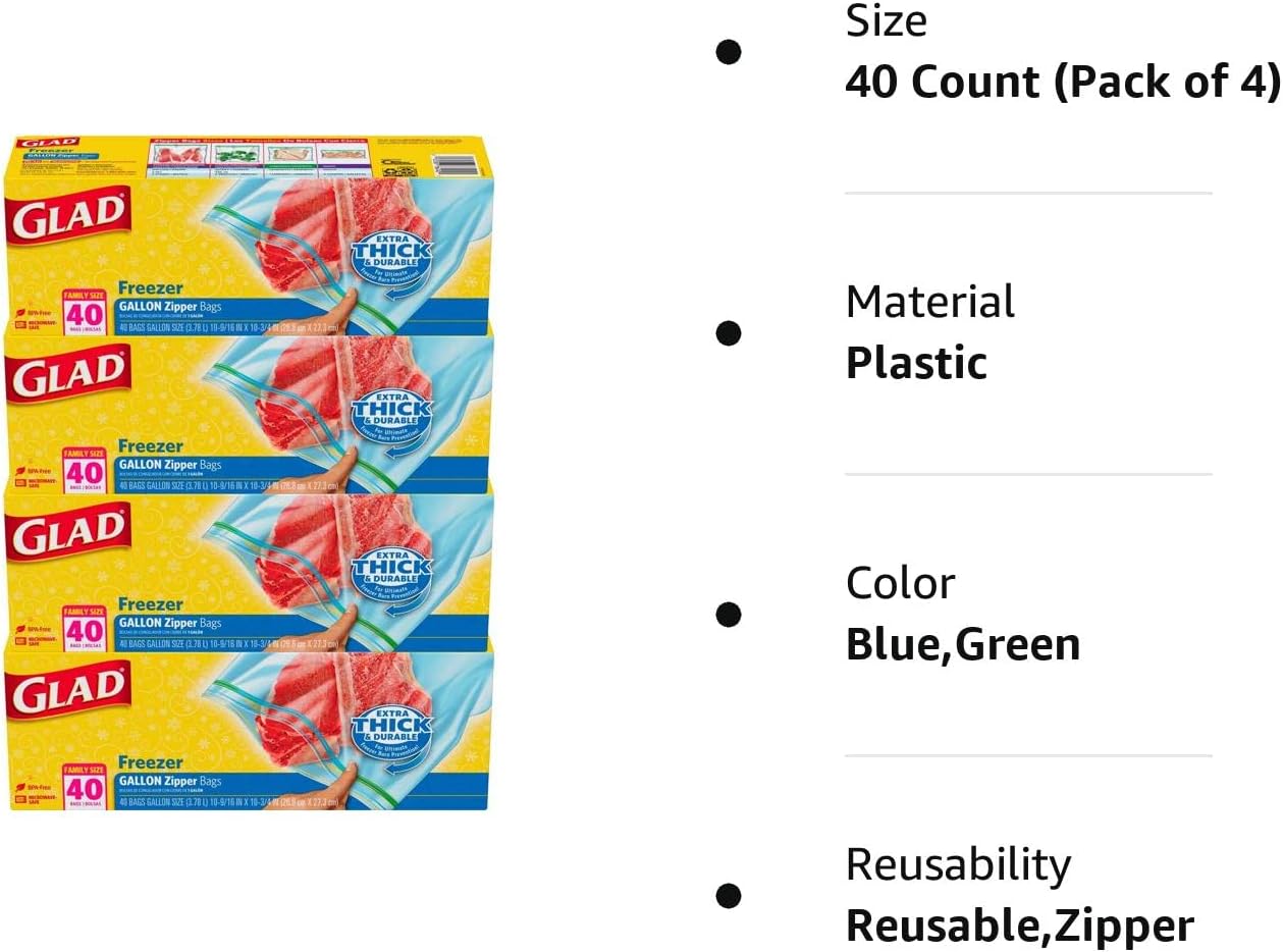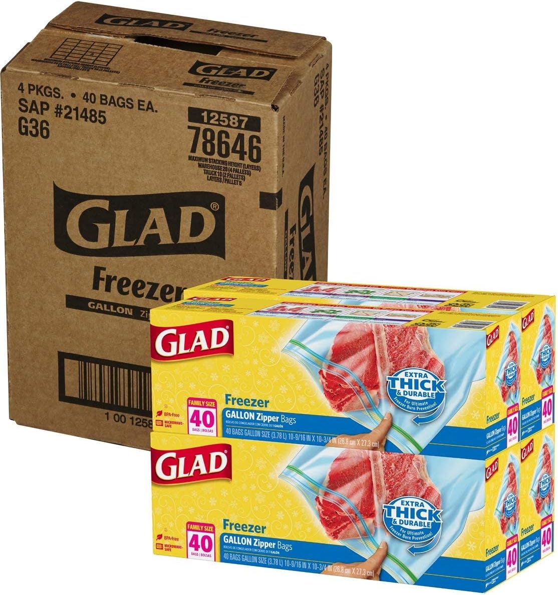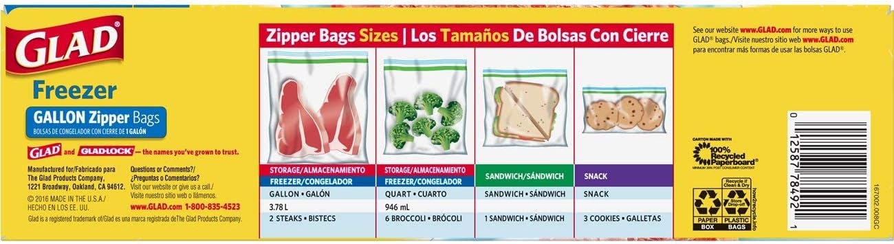 ZIPPER GALLON FREEZER BAGS: Glad zipper freezer bags are BPA free, have a zipper closure and are an essential storage solution for a busy kitchen