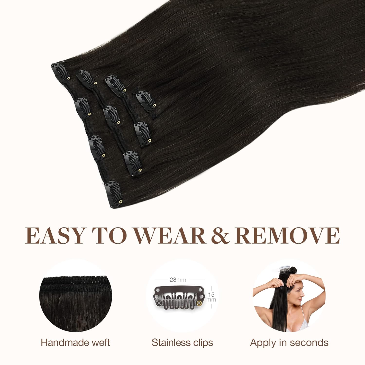 High-Quality Clips for Quick Wear: Our clip in extensions boast slim, silicone-backed clips for a barely-there feel, securely stitched and cushioned with gentle rubber to safeguard your scalp and hair. The PU design makes the seamless clip in hair extensions more invisible, comfortable, natural, and lighter. They’re a breeze to self-apply and remove, perfect for effortlessly transforming your look for any event, from weddings to parties to date nights.